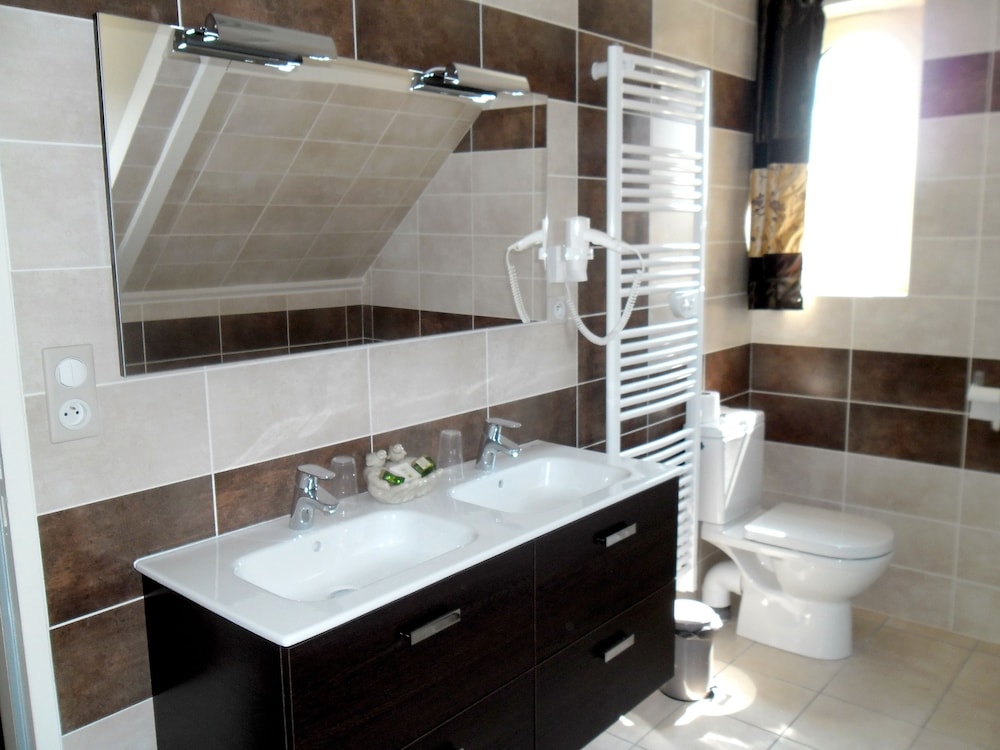 Réservation faite au dernier moment pour trois personnes, pour mon épouse, notre grande fille (adulte) et moi pour un enterrement du côté de Brive ; Un week-end pascal pour tout arranger. Pas moyen de trouver deux chambres libres dans le même hôtel, à part les hôtels de ZAC et autres zones commerciales. J'ai réservé une chambre pour 3 au logis les collines, sans même regarder les commentaires, en me fiant à quelques photos regardées en toute hâte. Et là, la surprise. Nous sommes tombés sur un hôtel situé sur une route de crête dominant la campagne corrézienne sur 20 km à la ronde, avec une chambre somptueuse sur deux niveaux, de la dimension d'un petit appartenant, avec terrasse, chambre au niveau un, chambre, salle de bain, WC, au niveau 2, avec tout le confort d'une bâtisse rénovée, sur un parc avec piscine etc... Accueil attentionné et chaleureux. Petit déjeuner buffet à l'avenant. Bref, une surprise totale vu les conditions dans lesquelles nous avions réservé. Nous avons simplement regretté de ne pas en profiter plus.