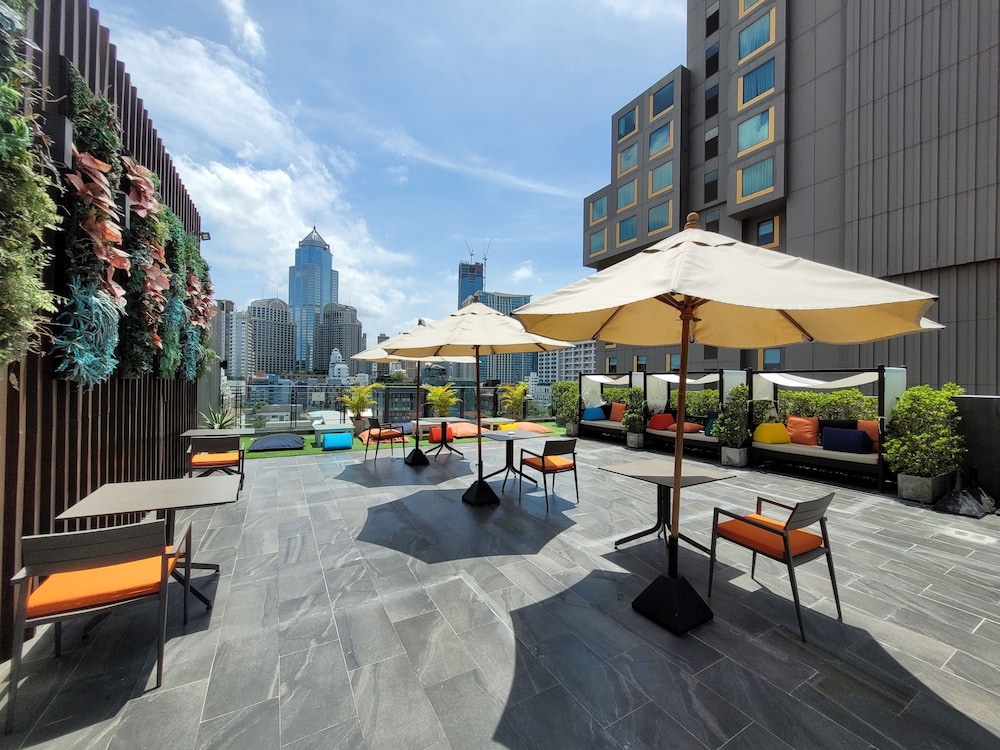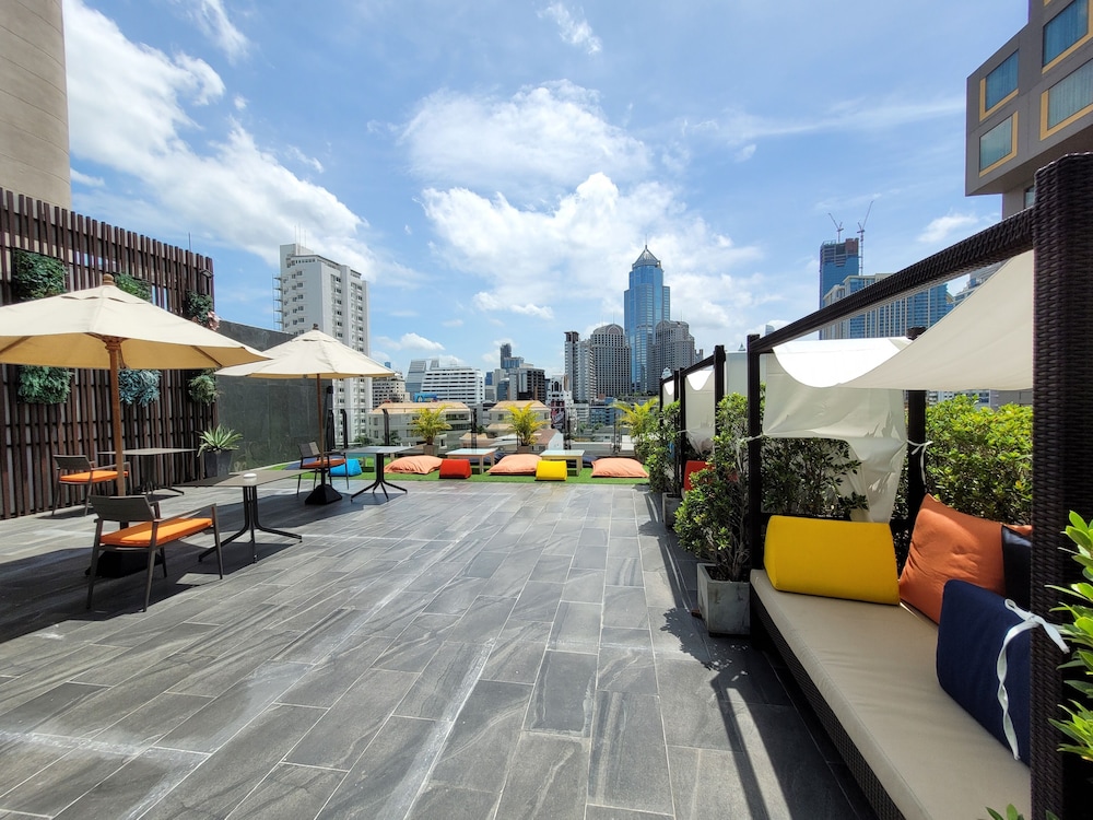 The hotel boasts a bar, restaurant, and a remarkable pool deck on the 10th floor, providing stunning city views of Bangkok; all facilities are of a very high standard.