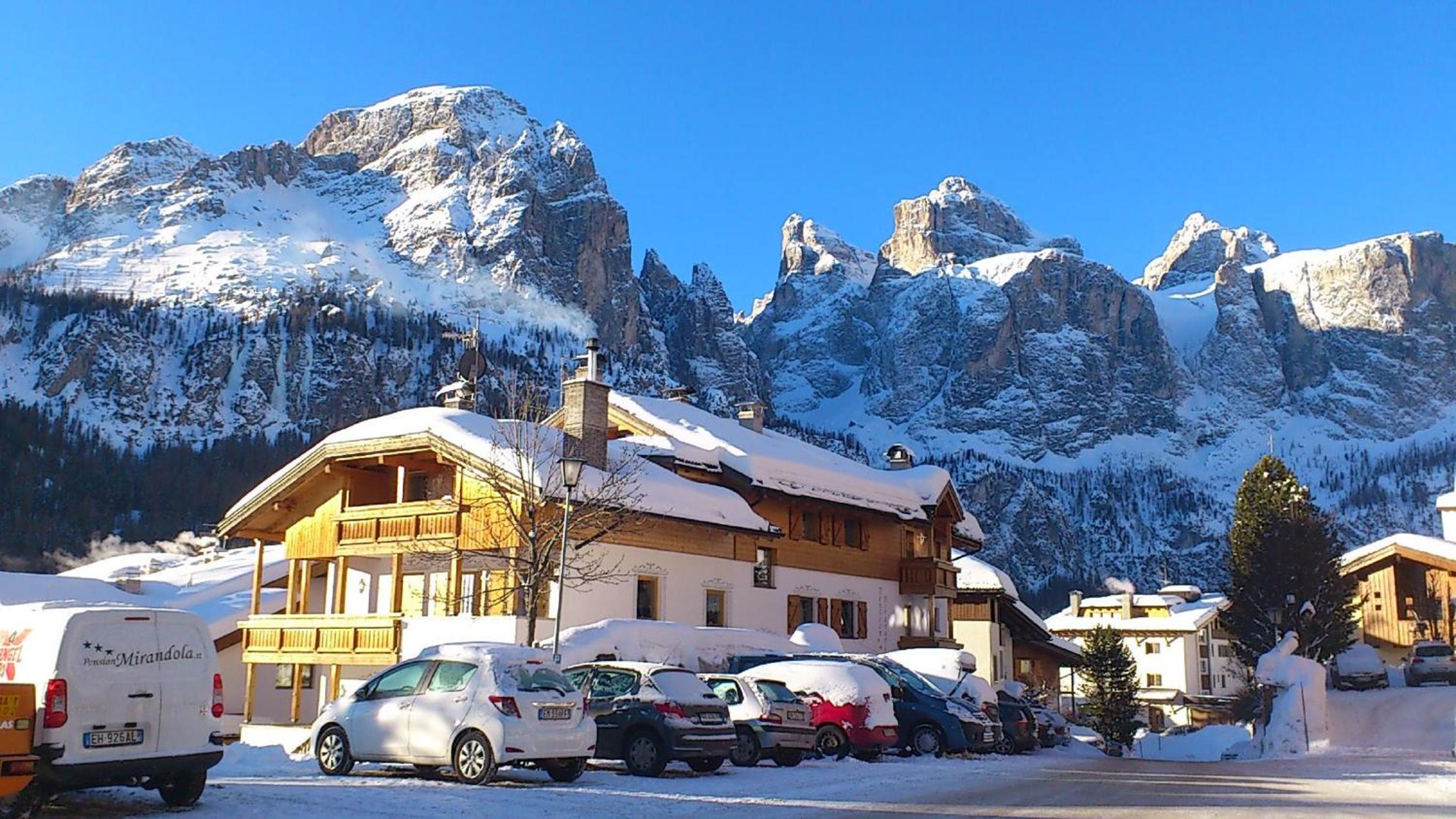 Offering Alpine-style rooms with a balcony overlooking the Dolomites, Pension Mirandola is a cozy retreat just steps away from the Colfosco ski slopes.