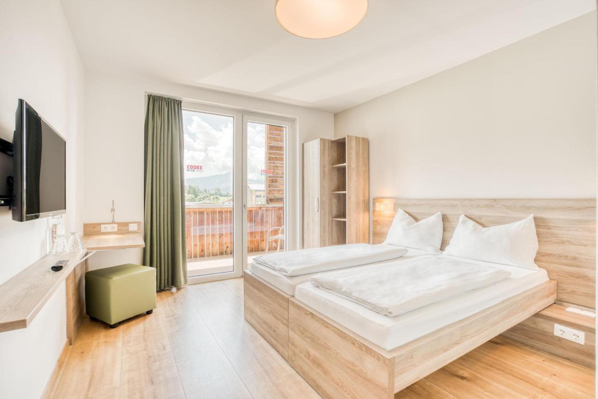 Experience the charm of the COOEE alpin Hotel Kitzbüheler Alpen with its modern Alpine-style rooms offering stunning mountain views from private balconies. Each room is equipped with a flat-screen TV, wooden floors, and a luxurious bathroom featuring a rain shower.
