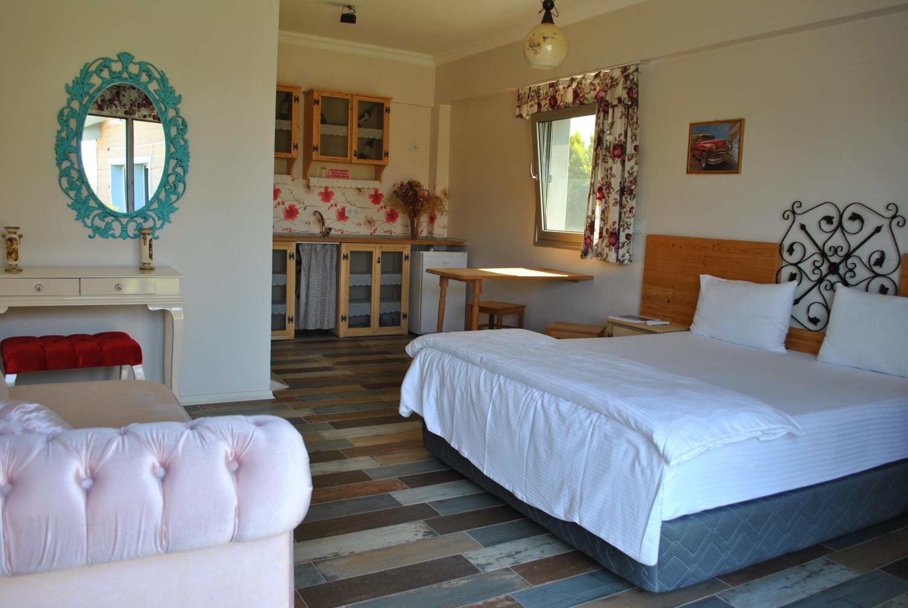3 kişi ailecek konakladık. İşletme sahipleri çok nazik ve güler yüzlü. Kahvaltısı cok yeterli eğer isterseniz otel içinde aperatif yemekler mevcut. Havuzu banyosu tertemiz. Restaurantlara ve plajlara yakın. Sessiz sakin bir ortamda kafa dinlemek için çok uygun tekrar giderim çok memnun kaldık.