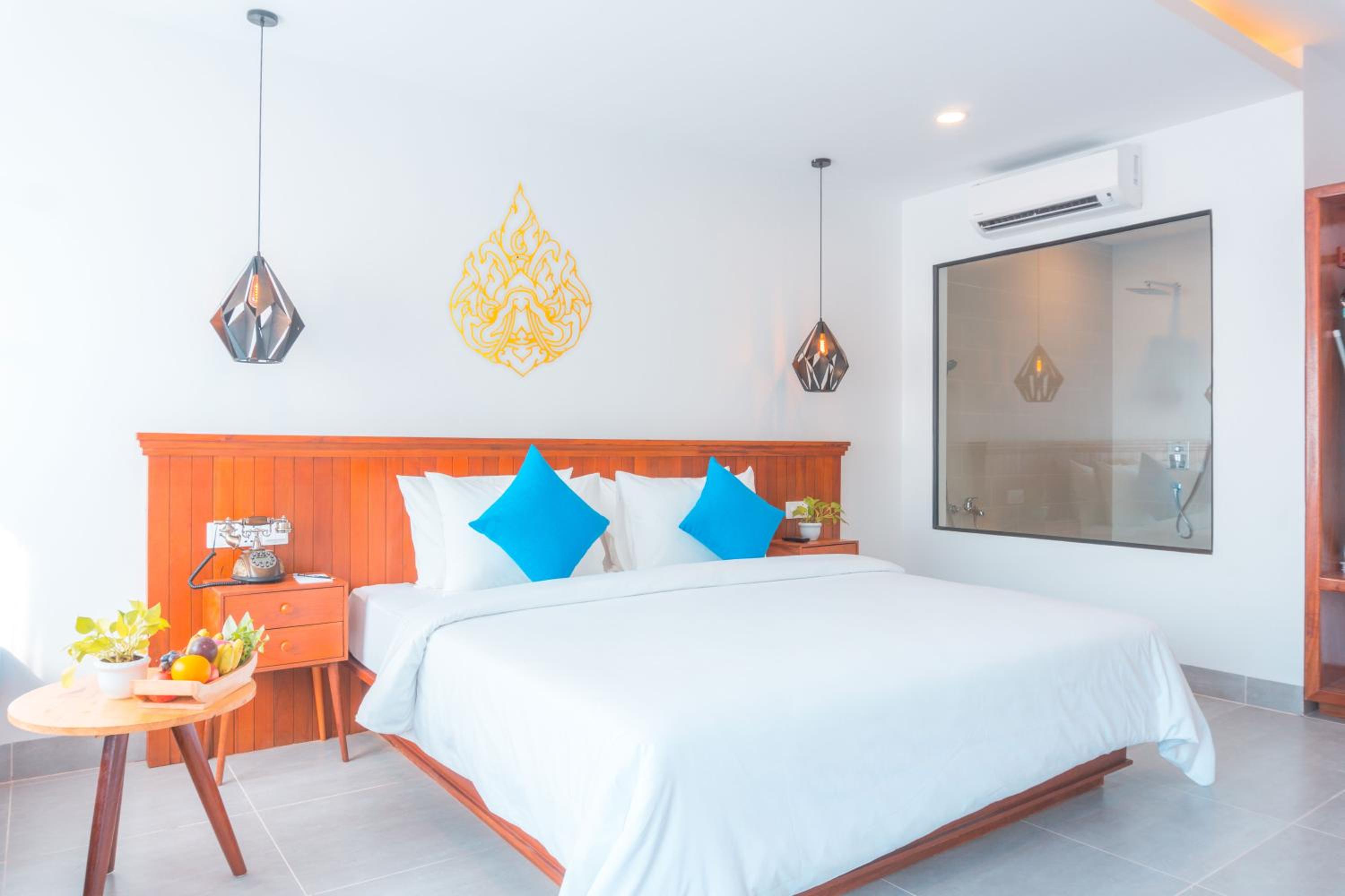Angkor Aurora, a 5-star hotel in Siem Reap, offers elegant rooms with modern amenities like flat-screen TVs, safety deposit boxes, and private bathrooms. Some rooms even feature balconies with pool views, ensuring a comfortable stay for every guest.