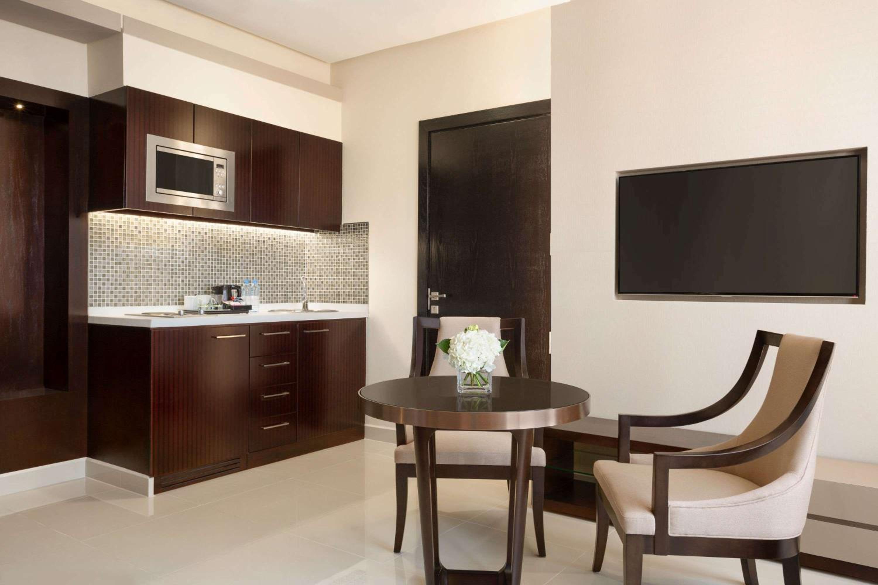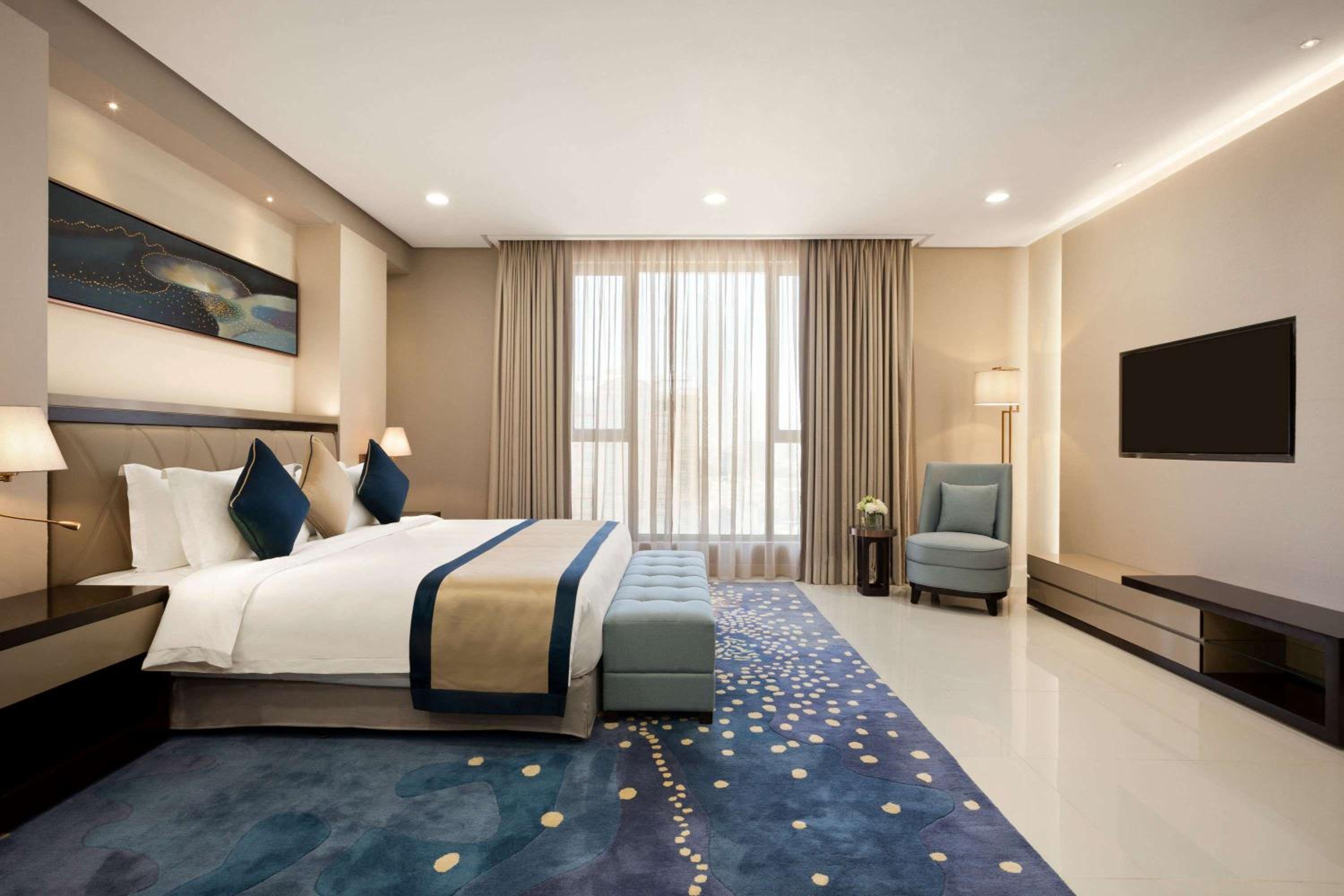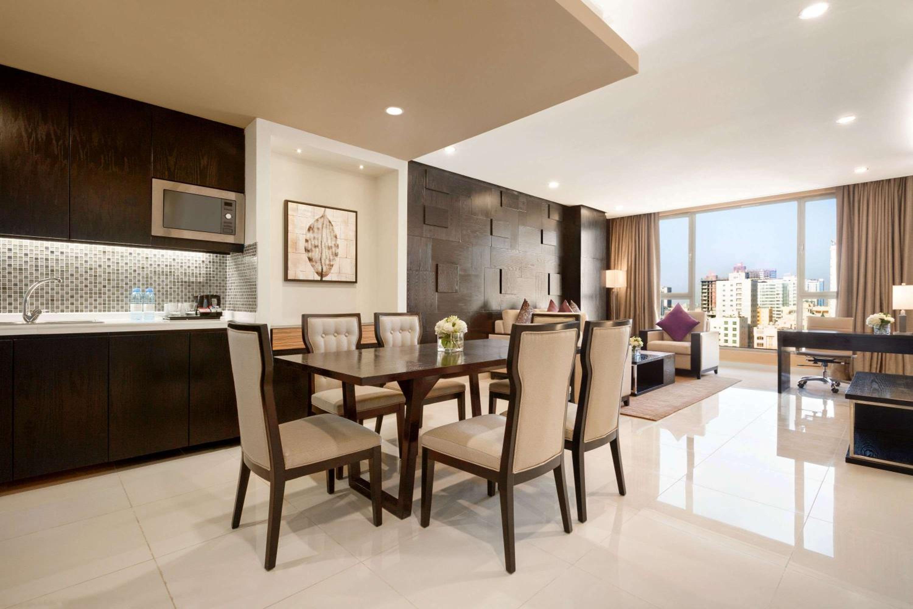 Wyndham Garden Manama offers spacious guest rooms equipped with modern amenities like flat-screen TVs, kitchens, and comfortable seating areas. Some rooms even feature balconies for a relaxing outdoor experience.