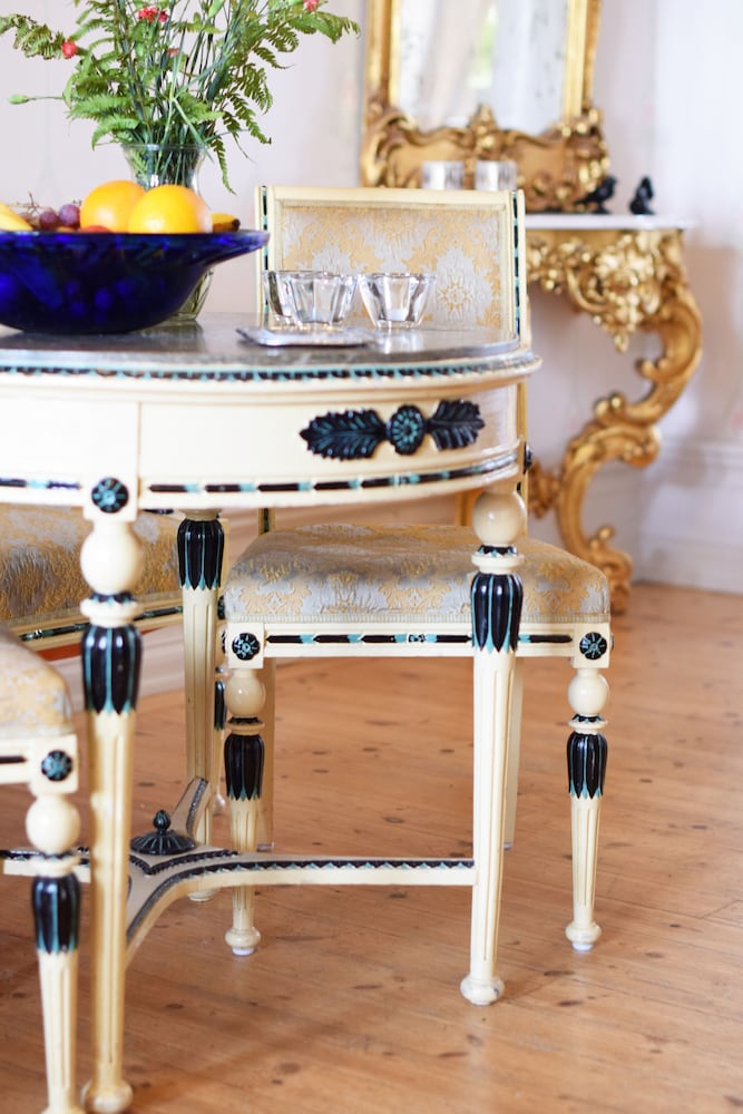 Slottslikt i huvudbyggnaden där frukosten serveras.