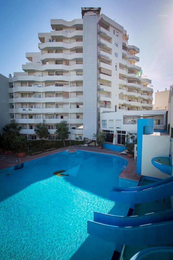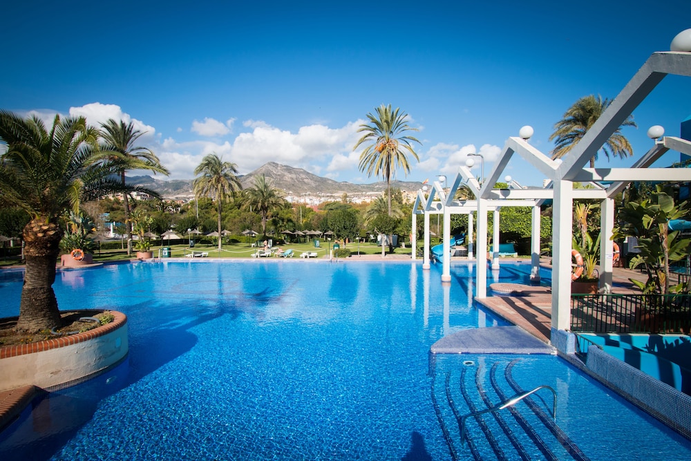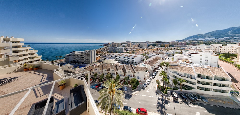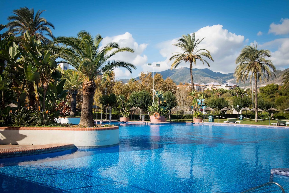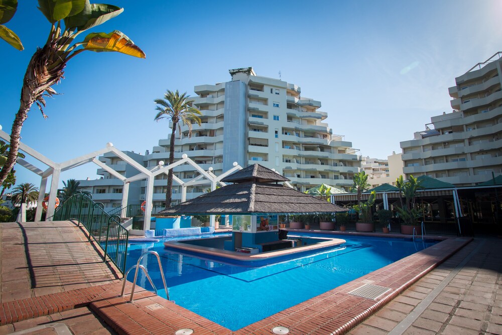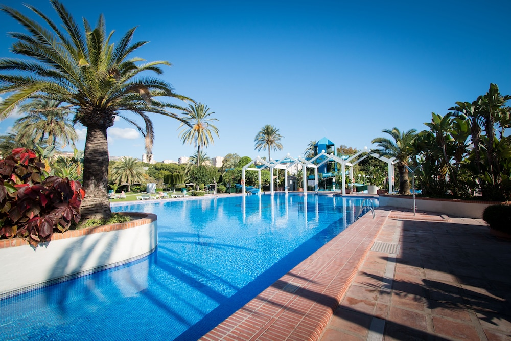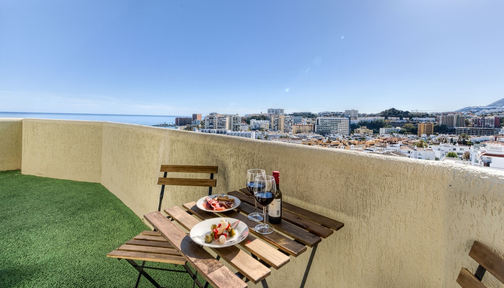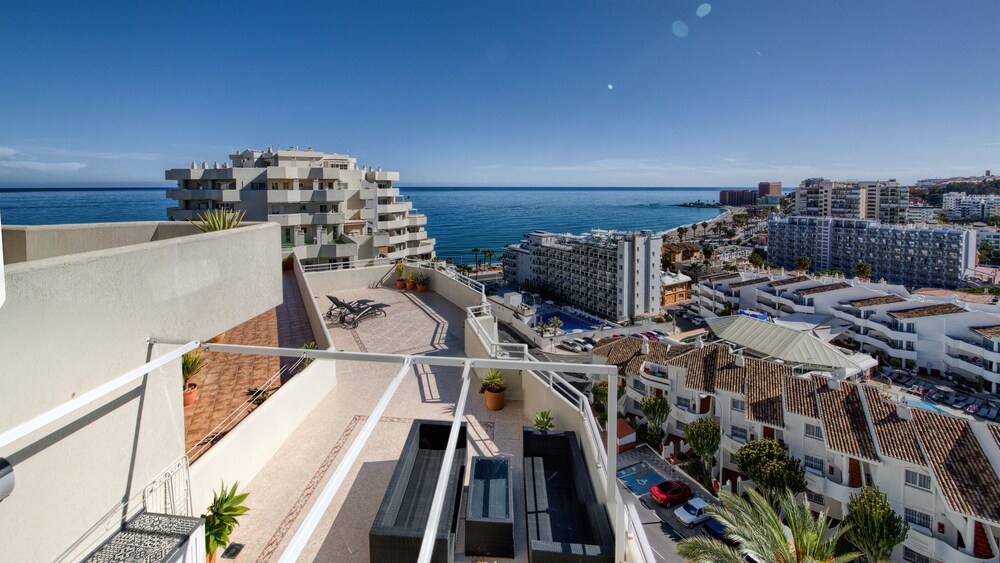 Outdoor Pool and Terrace Enjoy relaxation and stunning views from the outdoor pool, terrace, and garden at Holidays2Benal Beach. Take a dip or unwind under the sun with a drink from the poolside bar.