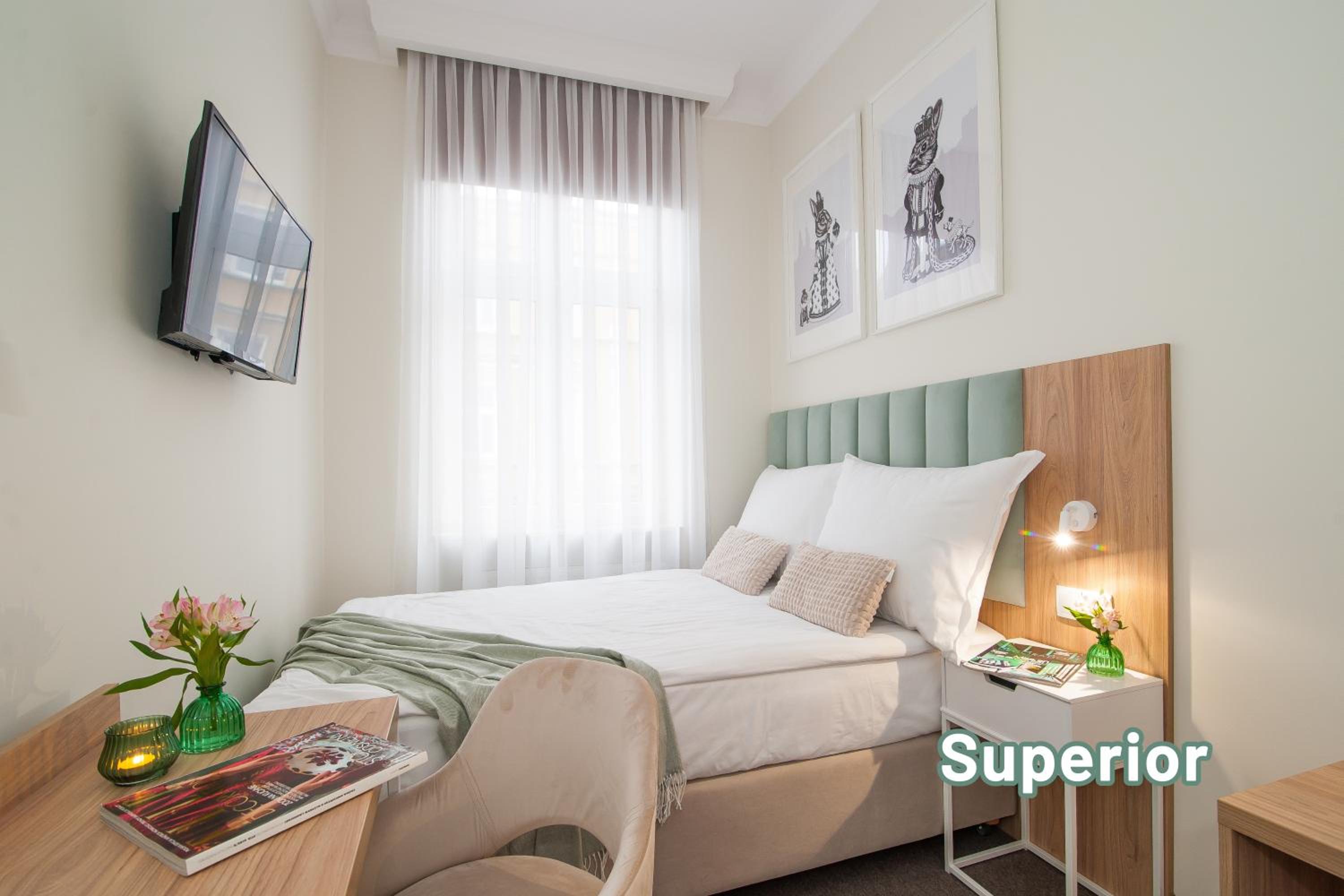 Wyjątkowo wygodne łóżka, czysto i cicho. Pyszne śniadanie podane na porcelanie w róże. Przyjazny, uprzejmy personel.