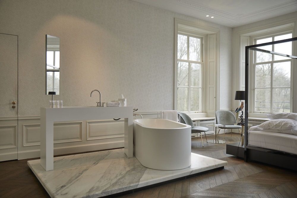 Heerljjk luxe hotel in schitterende natuurlijke omgeving. Mooie grote kamer (wij zaten in het bijgebouw), enige wat wellicht mist is een bad op de kamer. Hoofdgebouw is een schitterend monumentaal pand met oude wandkleden die in een museum niet zouden misstaan. Heerlijk gegeten s avonds, restaurant met Michelin ster en dat merk je. Wel redelijk jonge bediening. Enige minpunt zou kunnen zijn dat er (wegens covid-19) geen ontbijt buffet was, en je maar 1 'gerecht' vantevoren kon bestellen (omelet, salade, granola oid). Gelukkig wel voldoende brood, beleg en koffie etc