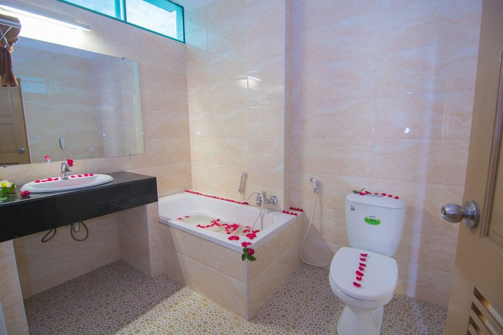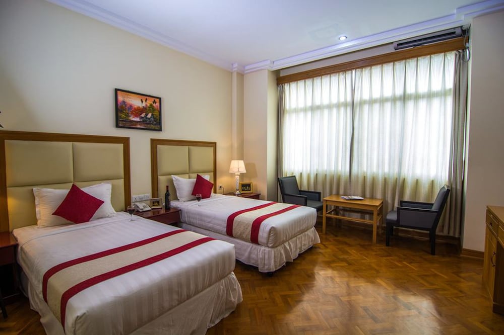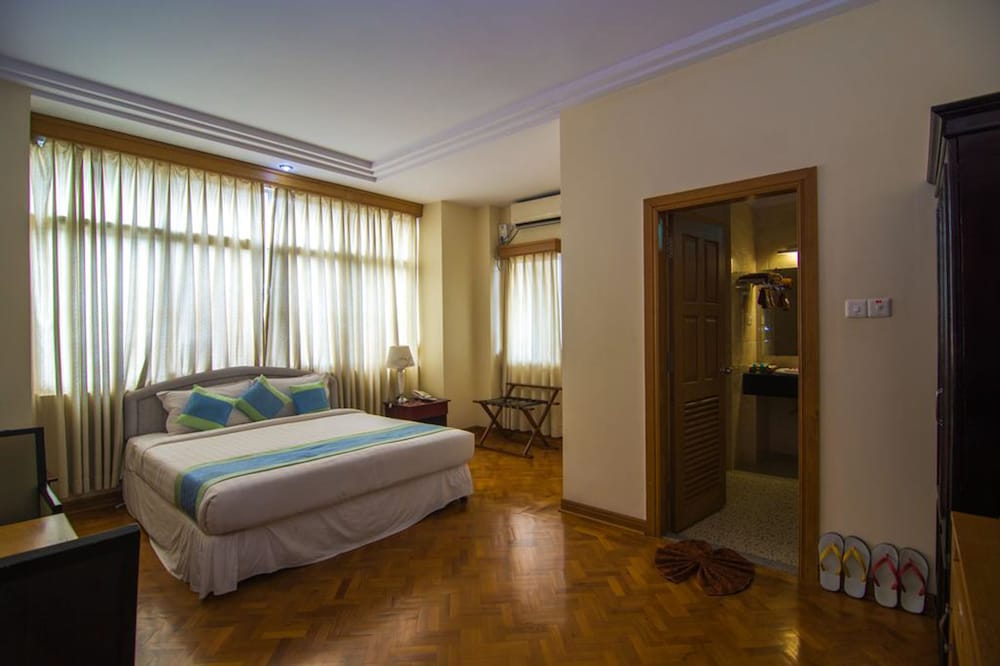 The rooftop breakfast was very good, eggs cooked to order. Room 401 had a balcony and big windows to let the light in. Really nice bathroom with heated floor in front of the sink. Very good value for money - the best value we have had in 3 weeks in Myanmar. Easy walk to boat hiring people on the canal.