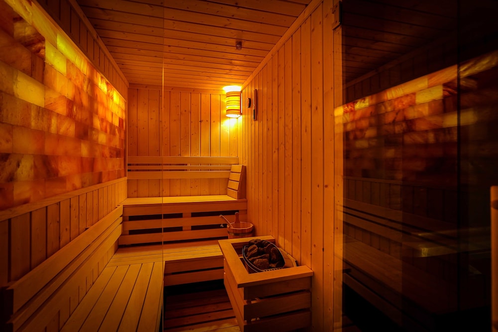 Indulge in the spa tub, sauna, and seasonal outdoor pool.
