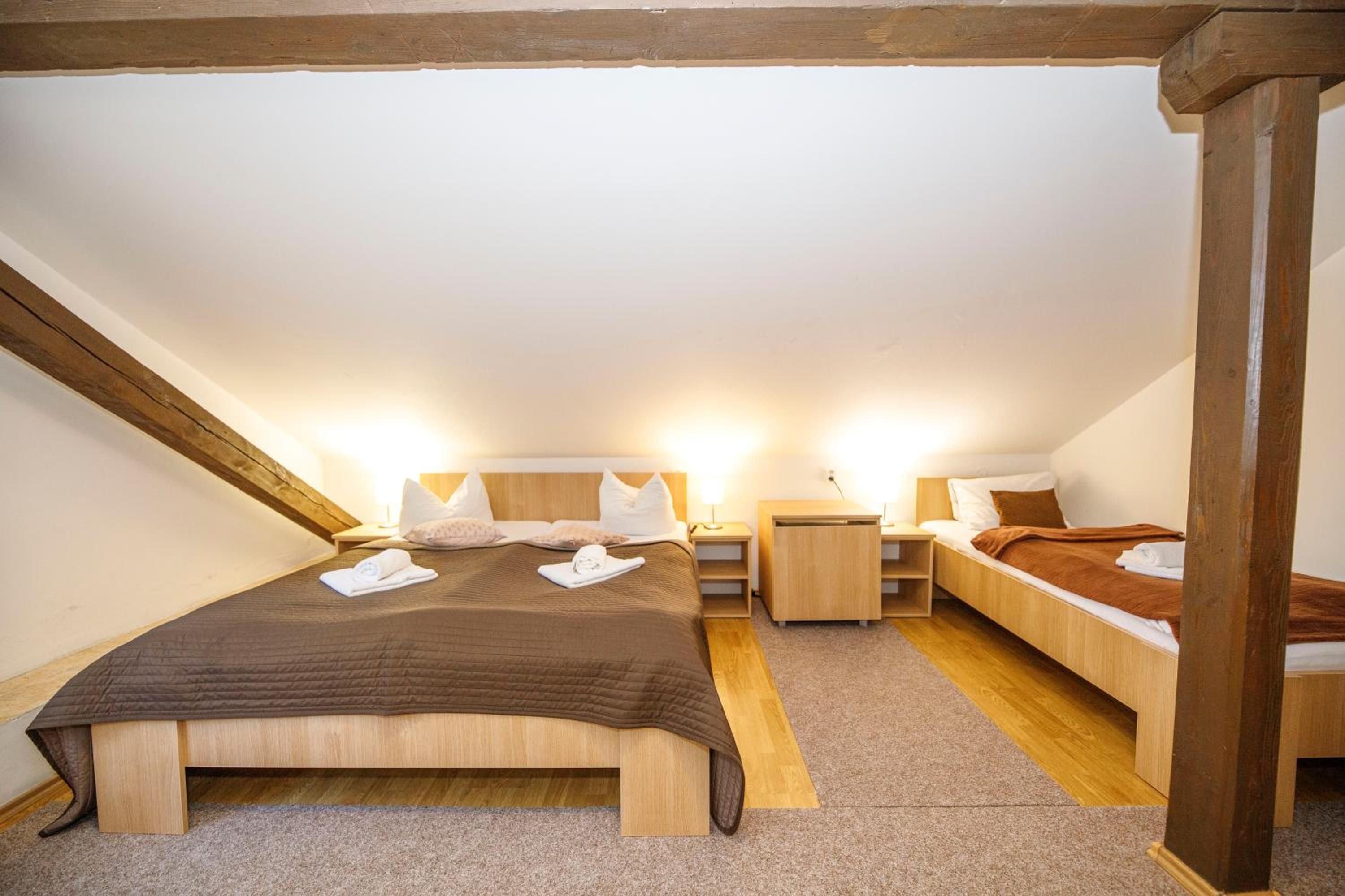 Podkrovní pokoj pro 3, na levé straně z chodby, měl nesmyslně umístěný záchod, nešlo si na něj sednout, muselo se sedět šikmo. Jinak bylo vše ok. Berte to jako návrh na opravu a zlepšení.