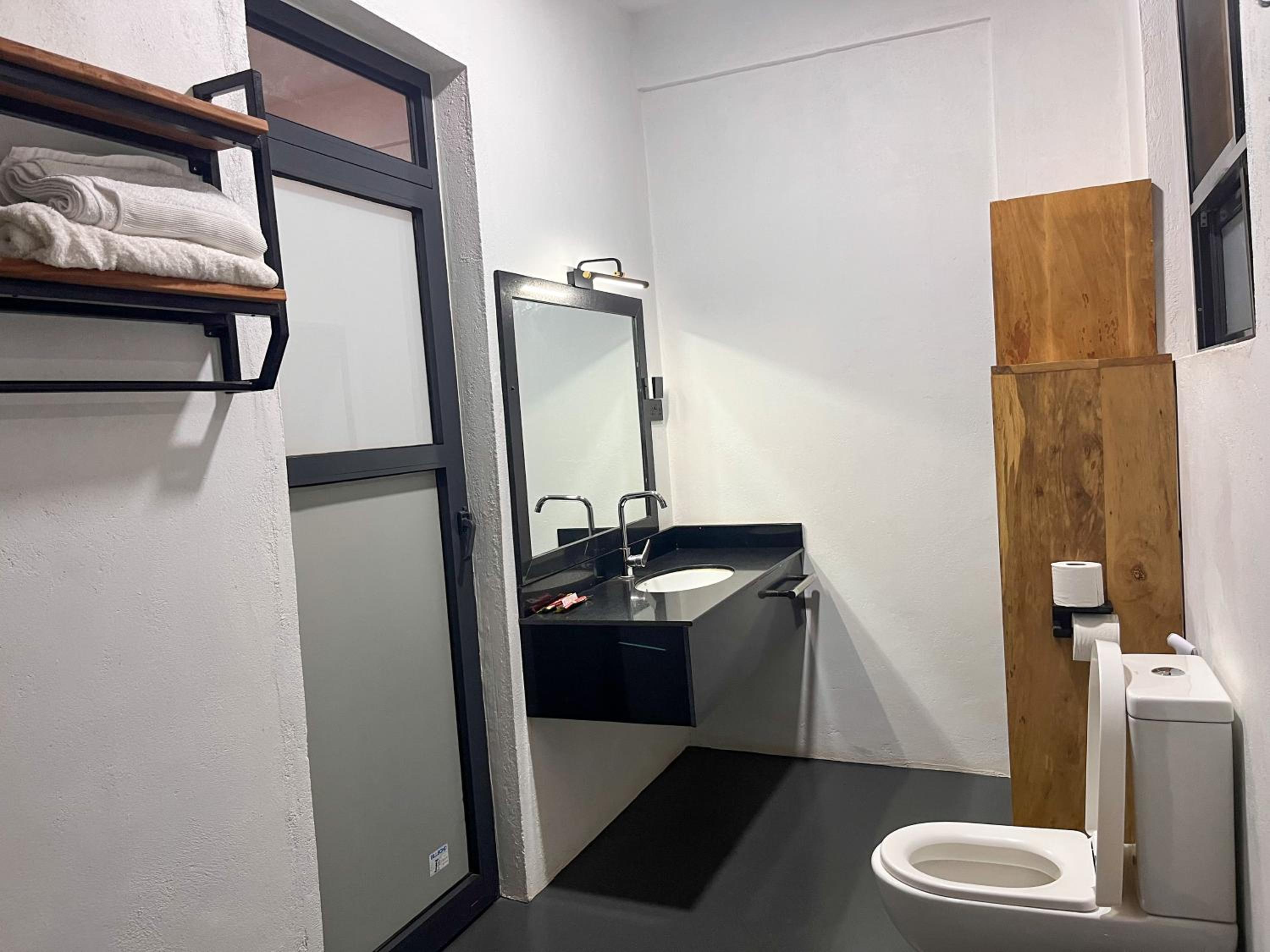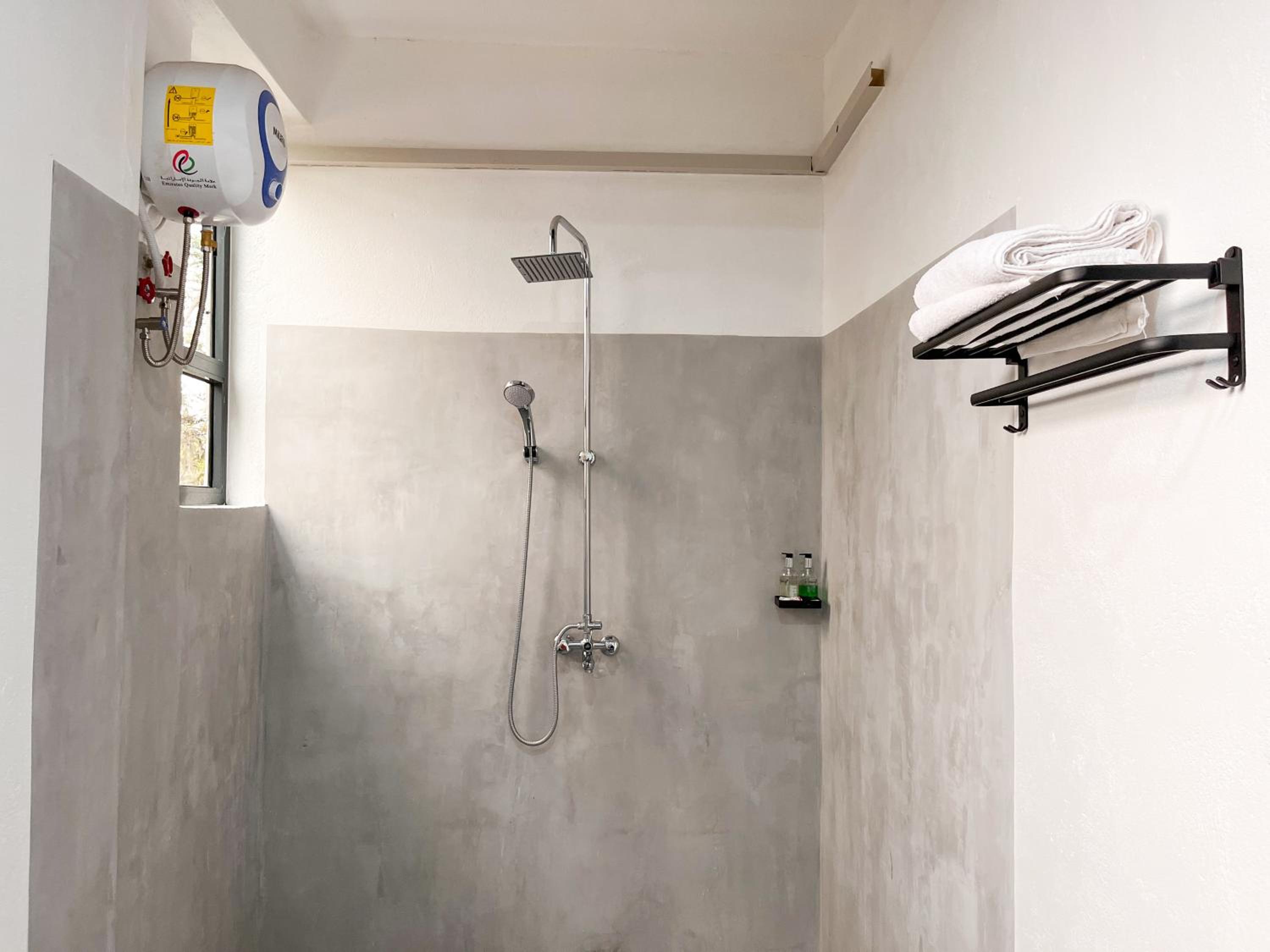 Maybe add a shower curtain to the bathroom