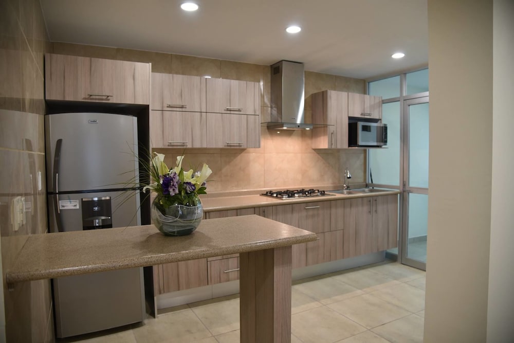 Muy bien en estos departamentos tam amplios y completos ....y muy céntricos y una excelente aleación.