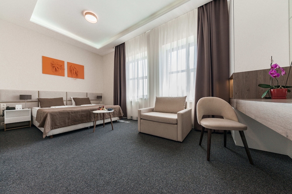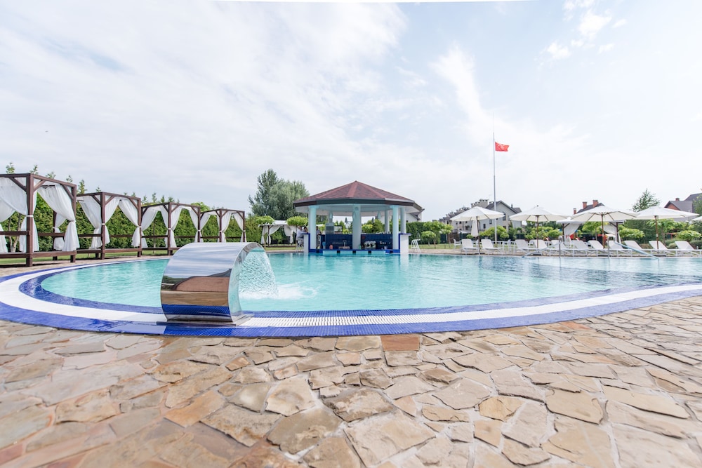 Very nice family spa hotel near Borispol Kyive Airport. Check in was easy and very pleasant reception staff. The Spa was excellent with big steam room and outdoor Jacuzzi. The rooms were comfortable with a nice Ensuite shower. Very clean. The dinner and breakfast menu were basic, but OK for 1-2 nights.