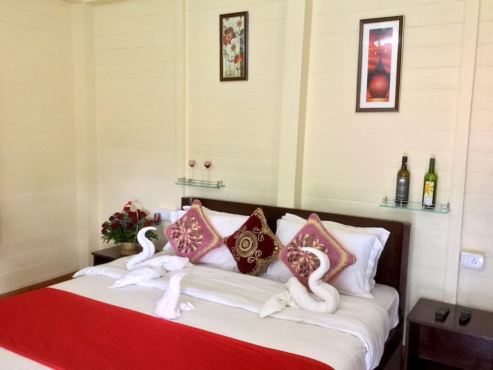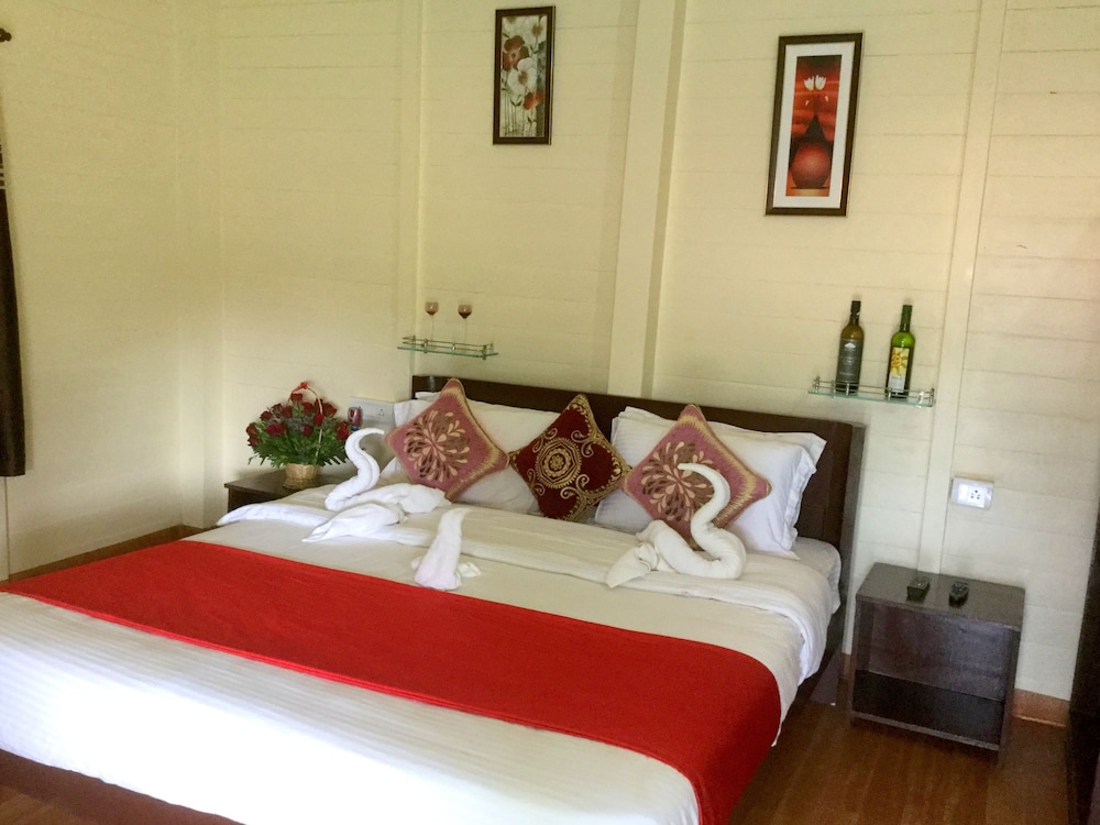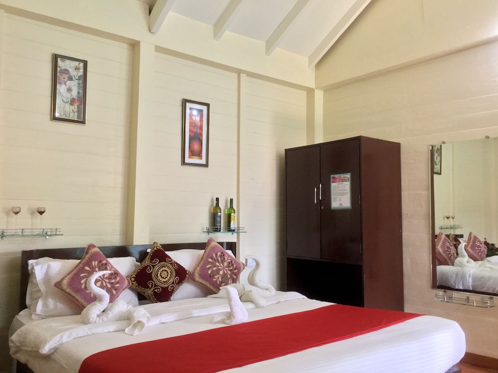 The cottages are exactly as pictured. Just six of them set in beautifully kept gardens. The AC unit was new and quiet. The shower room was huge and light with plenty of hot water. Also, nice to have bottled water in room. Unfortunately, the restaurant was closed throughout my stay.