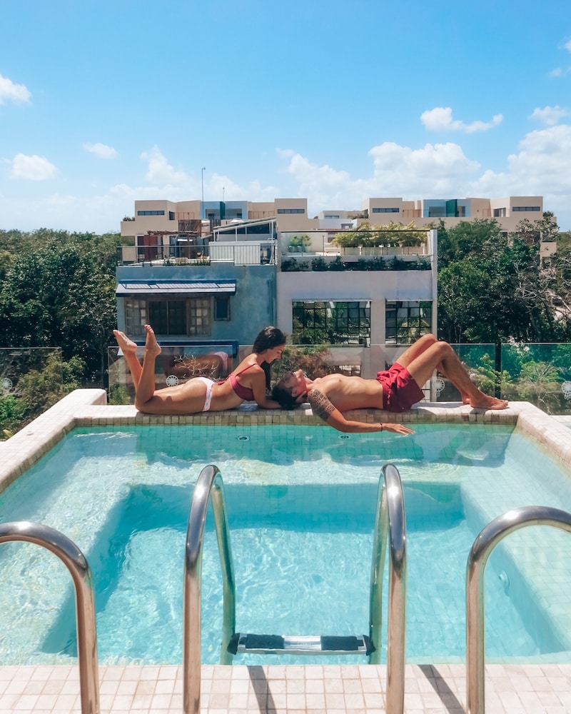 My sister and I vacationed here for five nights. We were beyond pleased with the service, accommodations and rooftop pool and restaurant. We loved the quinoa bowl and key lime pie! The service at the restaurant was exceptional. Angel and Edmundo were fantastic. The room had everything we needed, including ice-cold AC! And the front desk staff was very friendly and helpful in arranging excursions and transportation to and from the Cancun airport. This location is very close to spas, restaurants and convenience stores. We loved Fitalicious and Lotuspa nearby. We plan to return for another vacation!