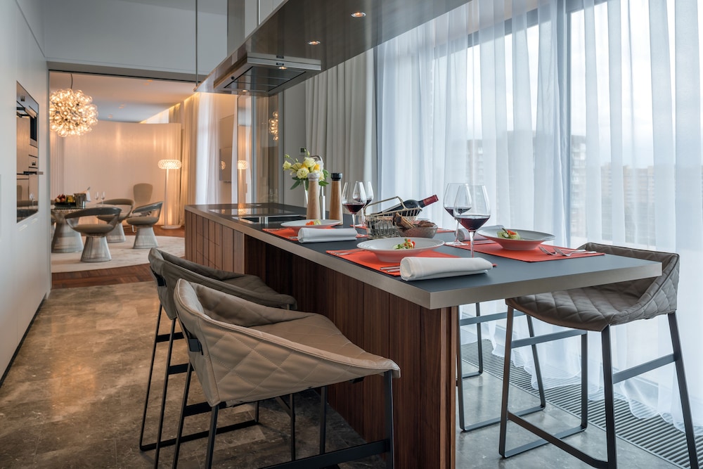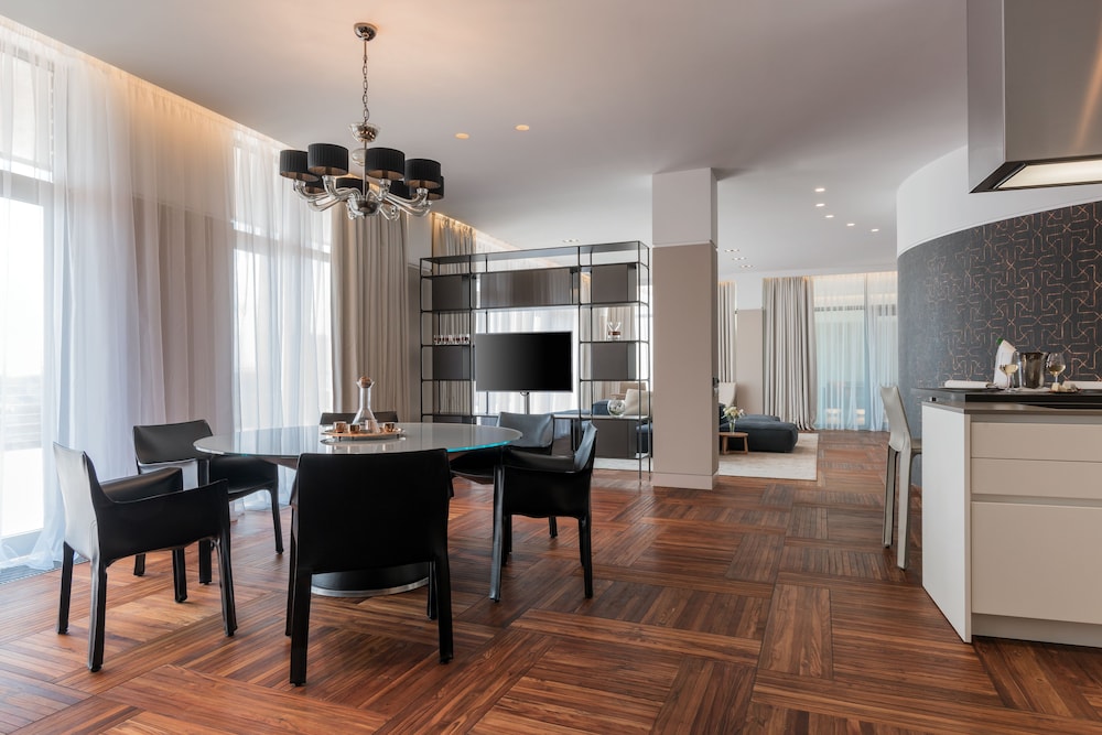 Отель на твердые 5 звезд. Шикарные завтраки. Номер был на 2 этаже и он конечно имел не самый хороший вид из окна - на детскую площадку. При регистрации сказали, что все остальные номера заняты и выше нас заселить не могут. В остальном превосходный отель. Очень современный и просторный номер люкс. Отличный SPA комплекс. Финтес-центр с современными тренажерами. Всем рекомендую себя побаловать пребыванием в этом отеле.