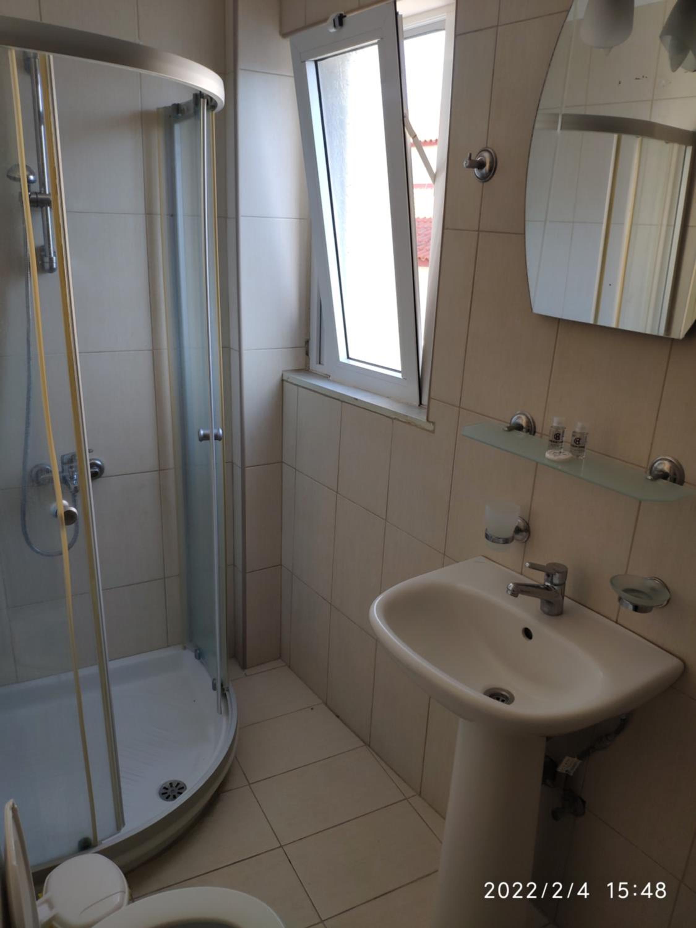 Chambre sans fenêtre, au fond de la cour, derrière la cuisine. La douche etait bouchée et j’ai du enlever un bouchon der cheveux!!