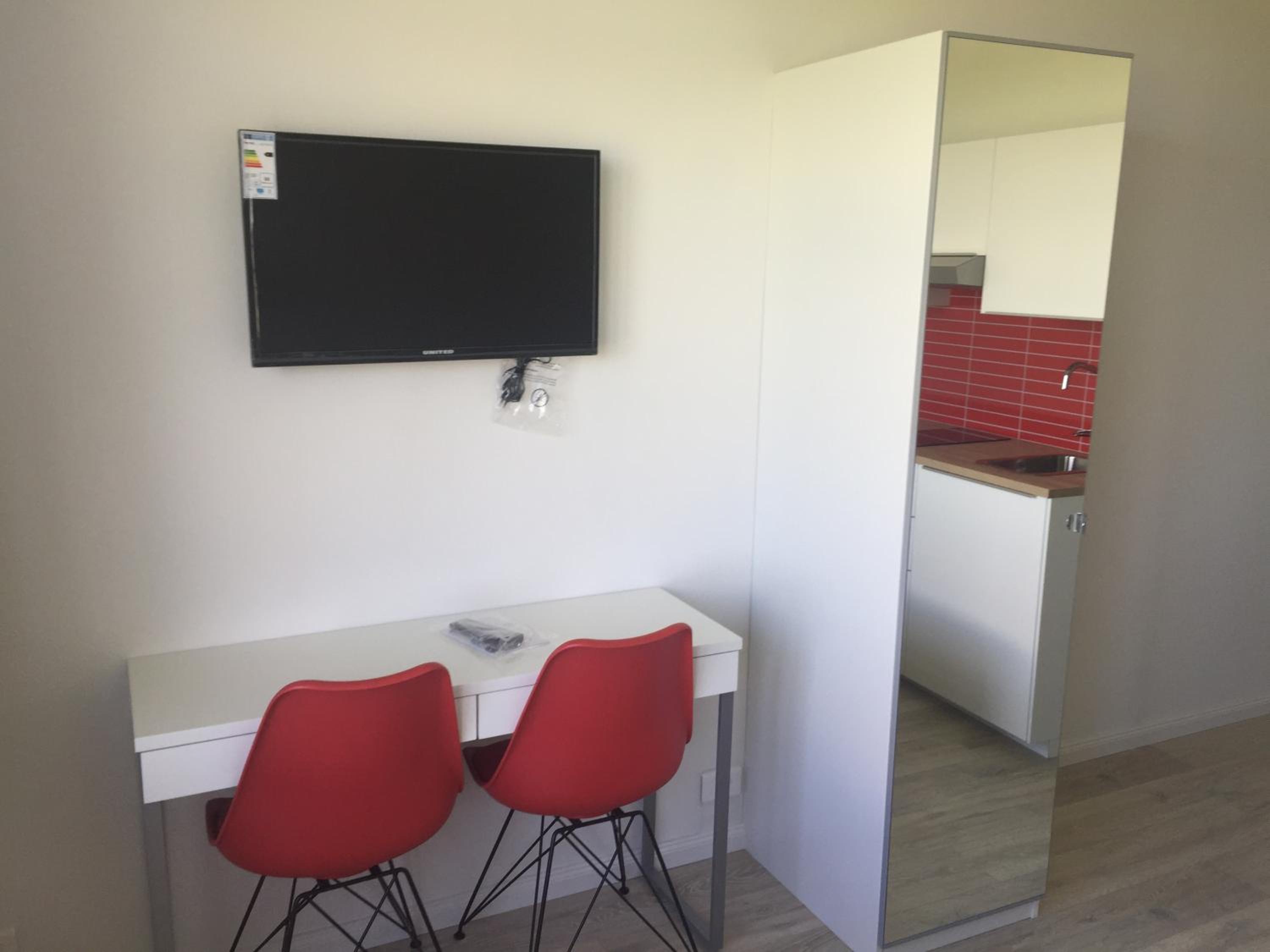Bardzo wygodny pokoj z dobrze wyposazonym aneksem kuchennym, czysto,schludnie i cieplo, calkowicie nowe wyposazenie.Polecamy.