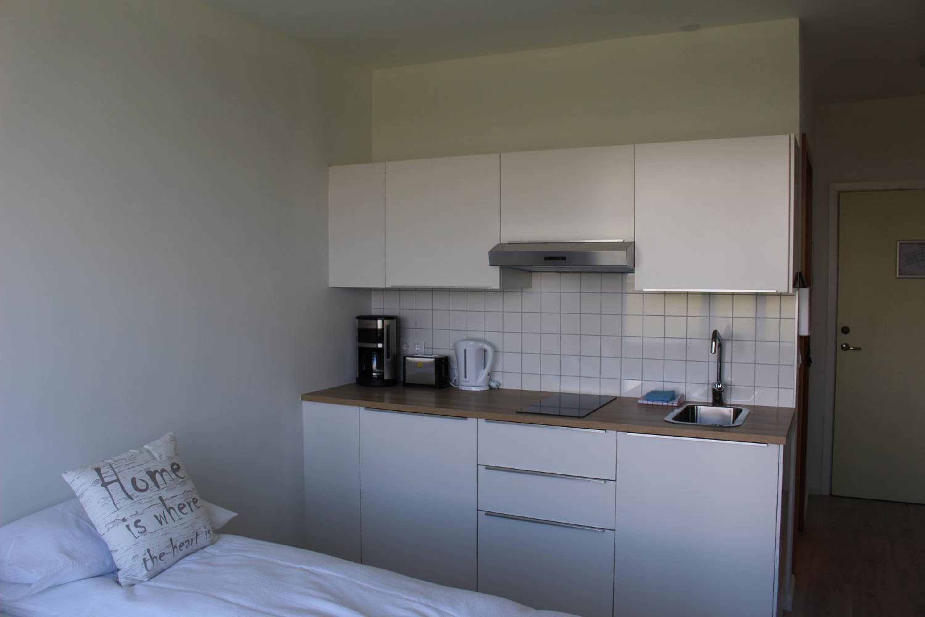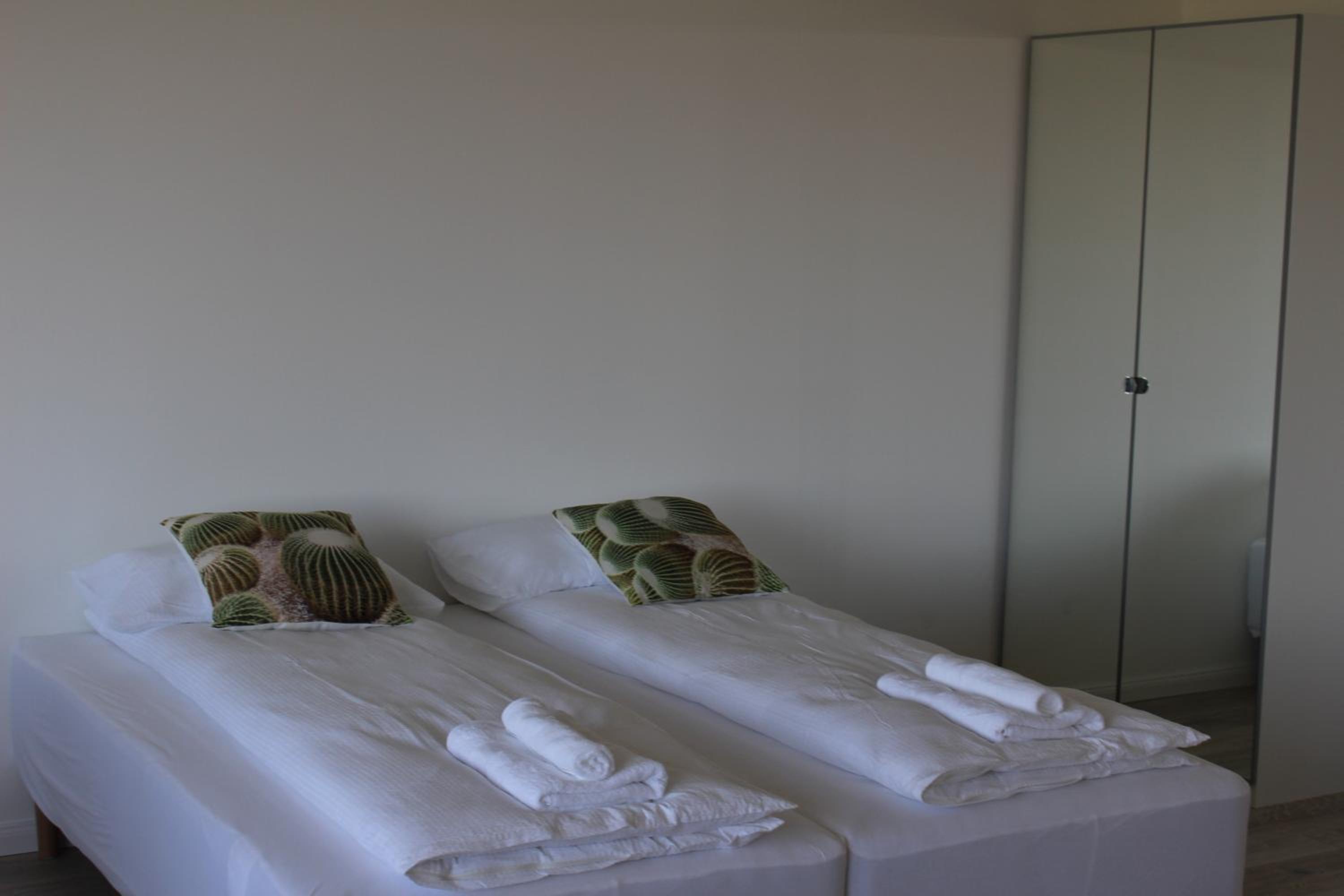 The overall external building is somewhat run down. The rooms however were quite clean. We could have benefited from a spaghetti strain and a cork screw. Also we find it nice when coffee is provided. If the fridge had a freezer we could have used it for our freezer packs. Stokkseyri is a very quiet town with not much to do.