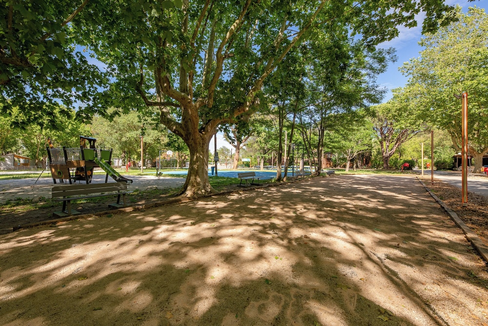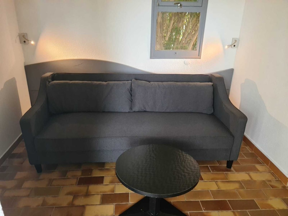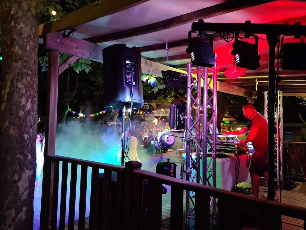 Check in und Team waren super. Die Anlage ist sehr weitläufig, es gibt viele Parkplätze. Das Hotel ist mitten auf einem Campingplatz, was uns so nicht klar war. Nach der Zimmertüre gbt es 2 Stufen im Zimmer, ich wäre beim ersten Schritt ins Zimmer fast die beiden Treppen runtergefallen, es gibt kein Schild. Nachts ist es unwahrlscheinlich laut, wir waren im Zimmer live bei einer Technoparty dabei. Der Vorhang deckt nicht richtig ab und das Licht draussen ist mit einem Bewegungsmelder. Im Pool Eingangsbereich riecht es nach Kloake, so dass wir gar nicht erst weiter zum Pool gegangen sind.