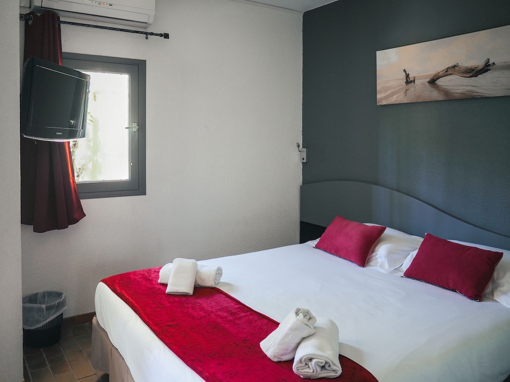 J'ai réservé une chambre dans cet hôtel et ensuite j'ai été voir les avis google et j'ai pris peur car énormément de négatifs. J'ai donc appelé l'hôtel pour avoir des précisions.la personne m'a rassuree en m'expliquant que l'hôtel avait été repris et que donc il y avait eu du changement en positif.a notre arrivée un tres bon accueil par la jeune fille que j'avais eu au téléphone. On nous a accompagné à la chambre- oui certes ce n'est pas hyper récent mais honnêtement nous avons apprécié cette chambre très bonne literie- télé et climatisation. J'avais précisé que c'était notre anniversaire de mariage nous avons eu une surprise offerte. Dans le frigo 1l de jus de fruit et une bouteille de vin et aussi une énorme panière de fruits frais vraiment encore merci.le petit déjeuner excellent. La directrice qui nous a accueilli est très sympathique ainsi que tout le personnel