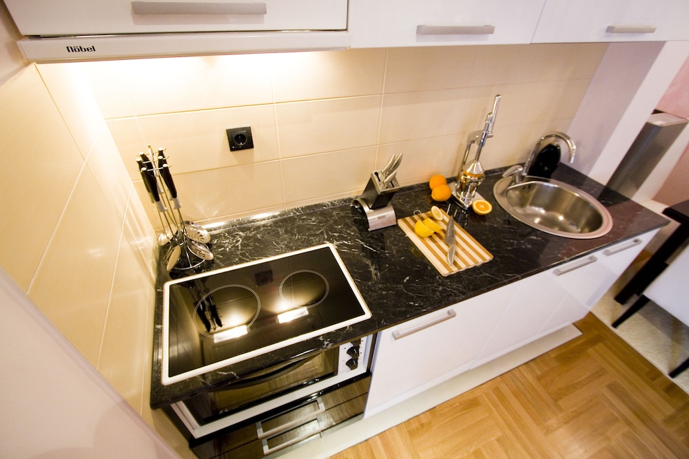 Its a short walk away from the centre, maybe around ten minutes. Breakfast was available to order in the morning and was delivered to your apartment. The ladies on reception were very helpful and kind.