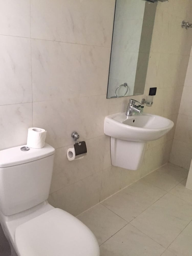 Location good near Hamra street. Room not as luxurious as the lobby lets you think but not bad either. Enough furniture, big table and mirror, place for luggage, minibar. In bathroom needed hooks and levels where to put your things. Just warm water, not hot. Cleaning every day but forgot to bring new towels! No night lamp and no light switch near bed. Wi-fi mostly not working. All in all not bad at all but the traffic noice - in all Beirut - is terrible, even in the 6th floor.