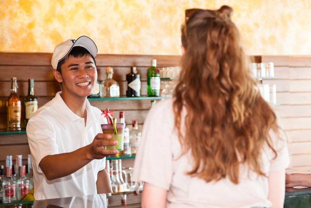 Had booked a garden suite but was put in a different room. Got the impression the hotel was fairly empty so were putting people close together. Right on beach but reception rather disorganised.