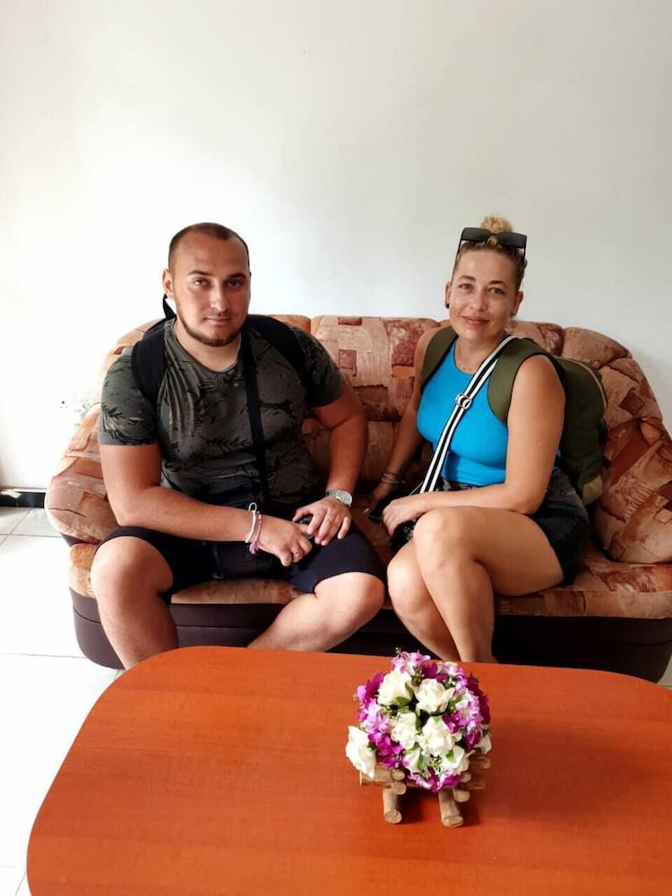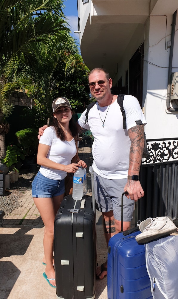 Staff/owners are lovely and so helpful. Parked our tuktuk at the bottom of the short path (2mins to the hotel from tuktuk) Wifi great. We upgraded during our stay as we was originally in a double room with no AC. It was far too small and hot. So we then paid to move upstairs. The room had AC and was bigger for our cases. Area is fine. Food and beach nerby.