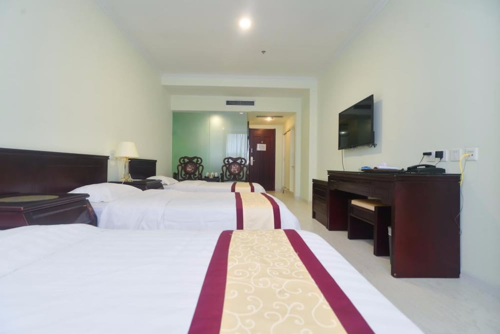 酒店裝修舊,房間兩床雙人房算大,房間整潔,廁所舊但乾淨,近火車站,樓下有公車去山海關,對面公車去北戴河,交通方便。