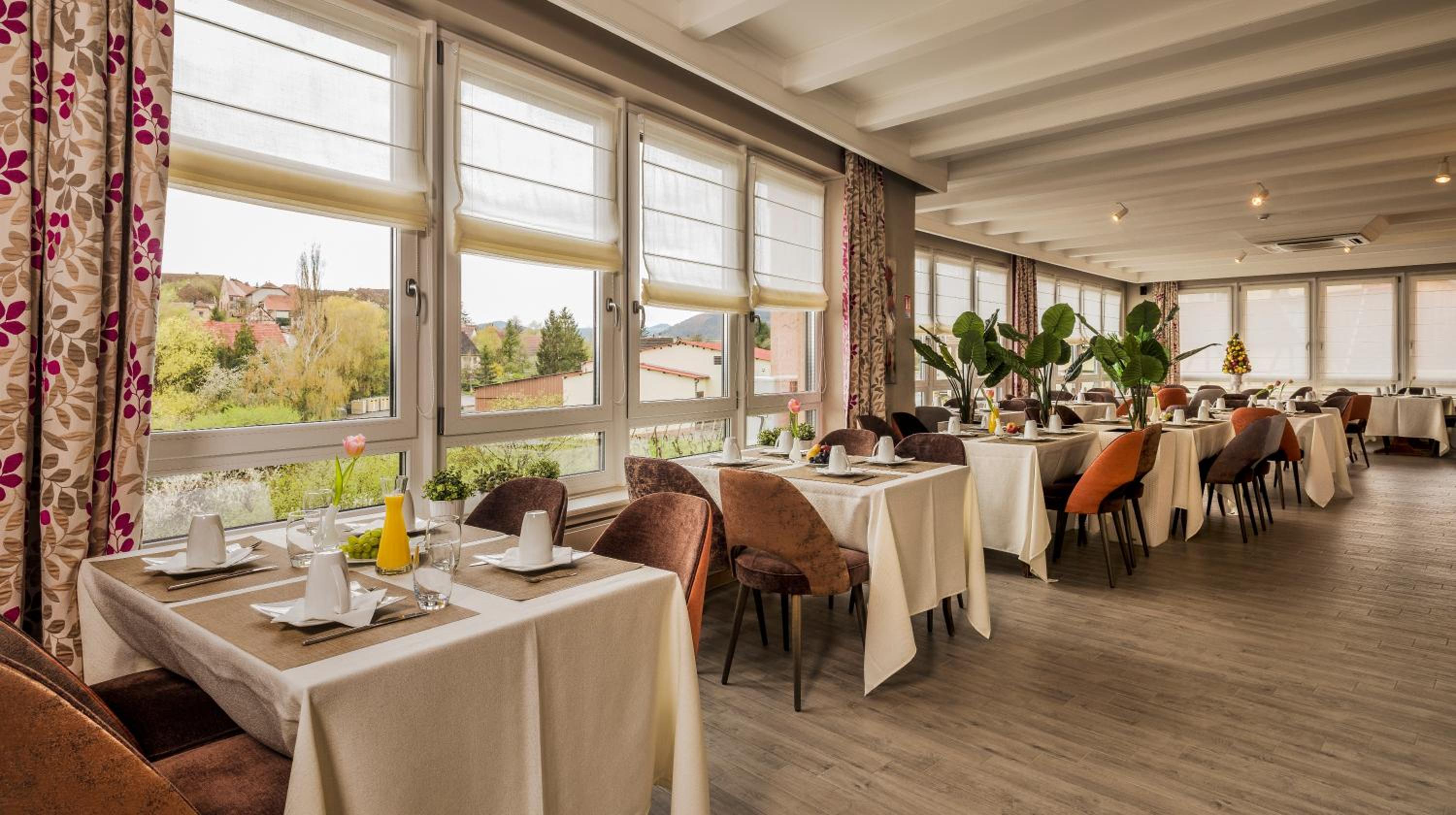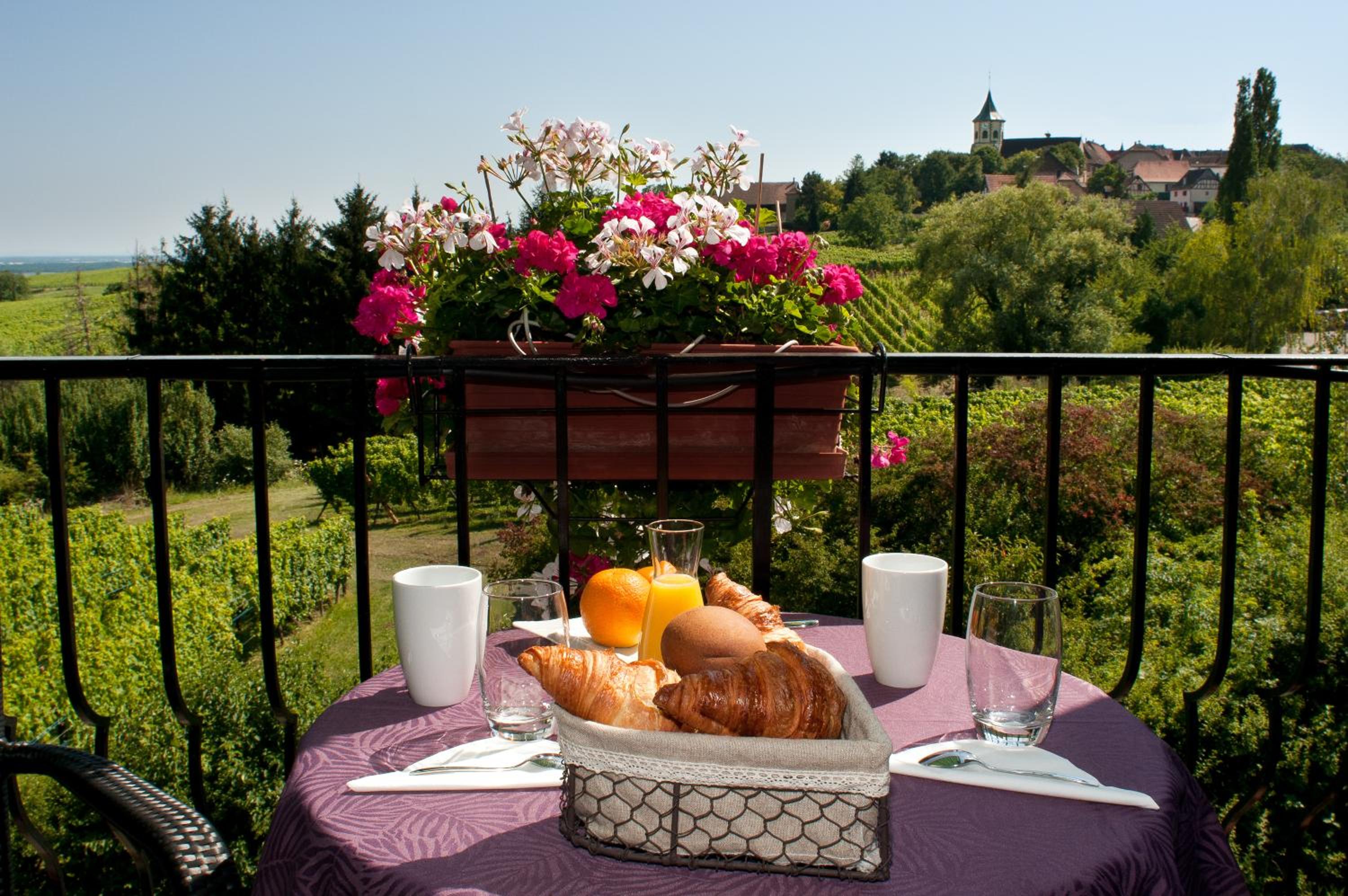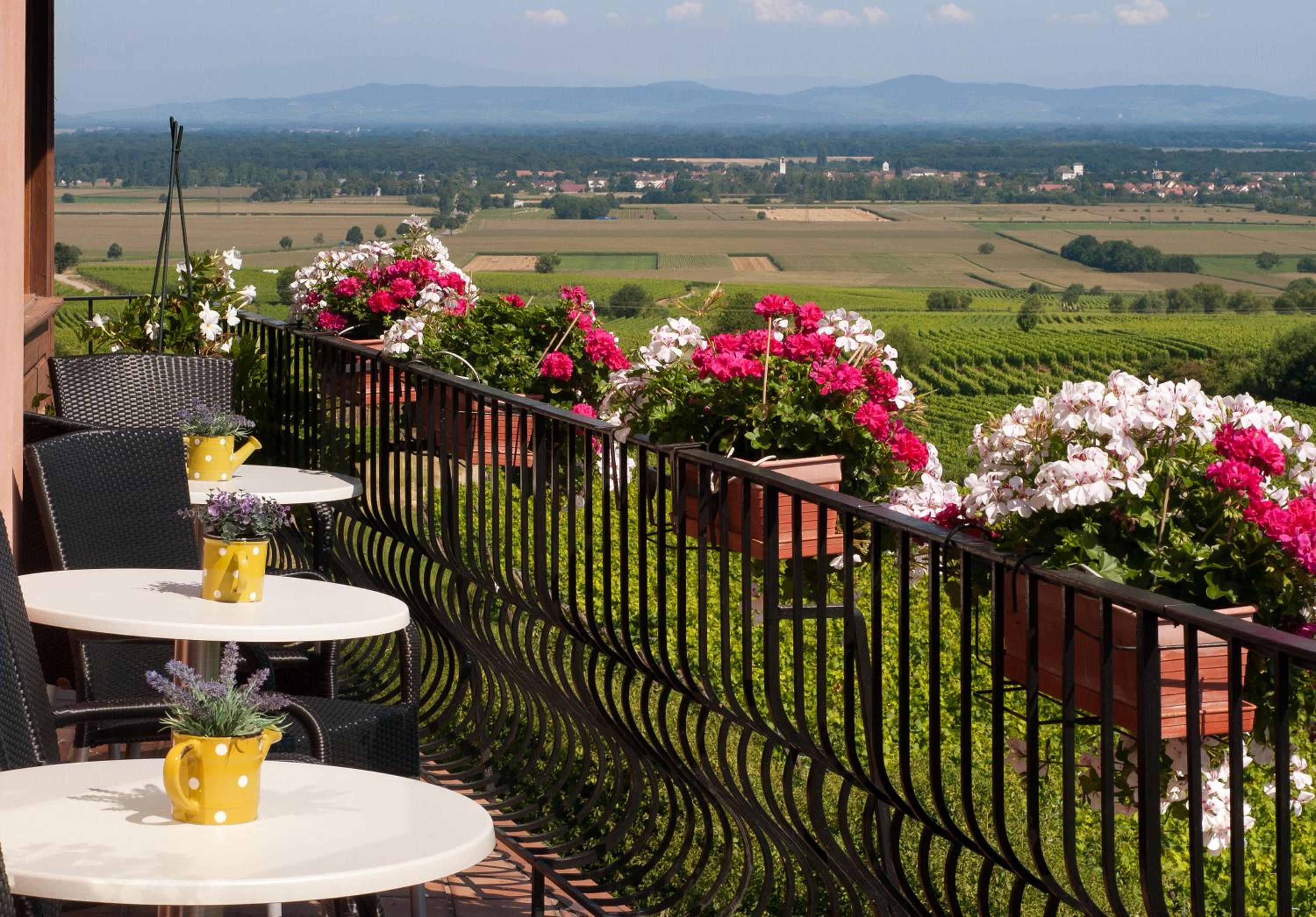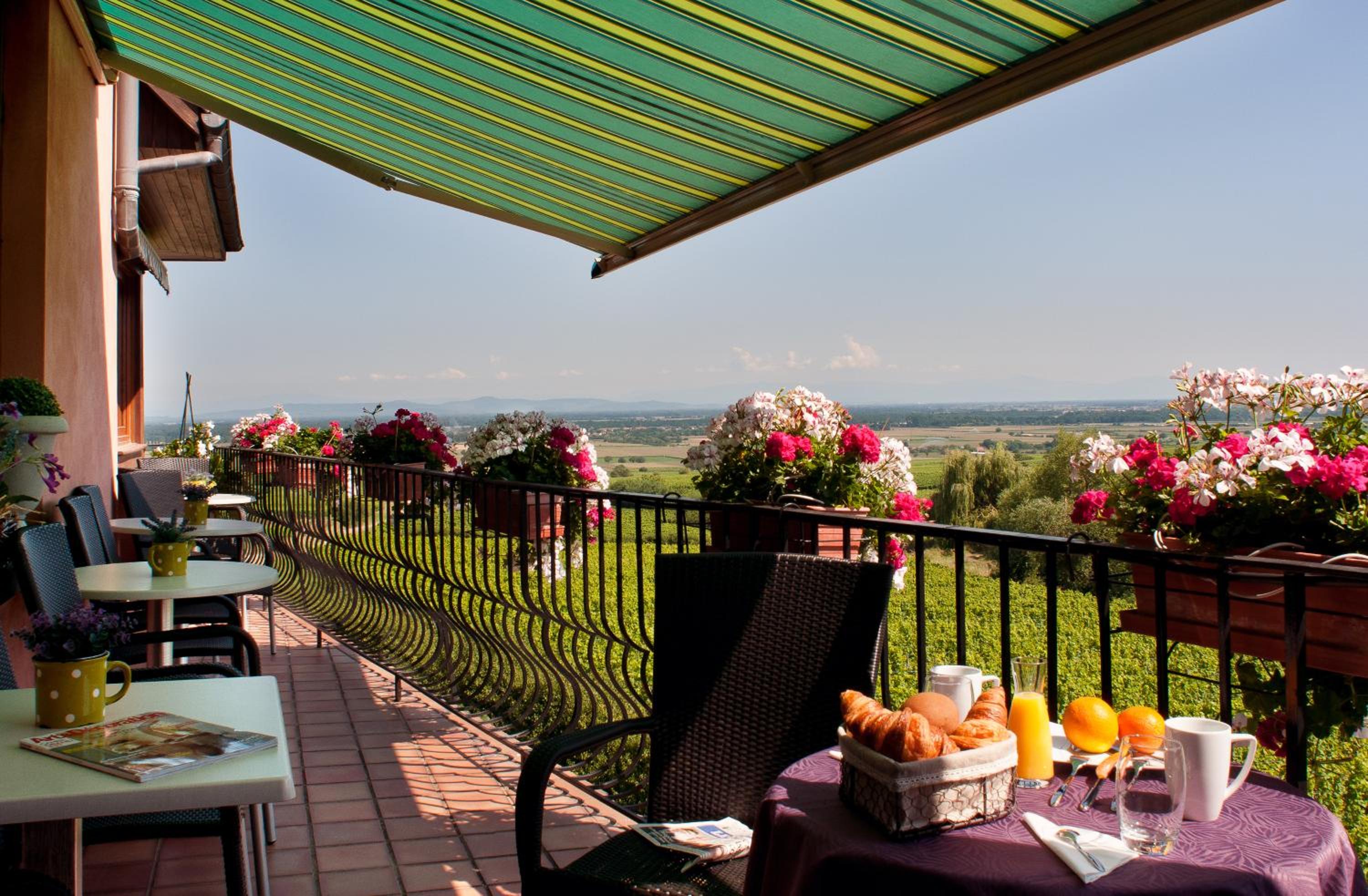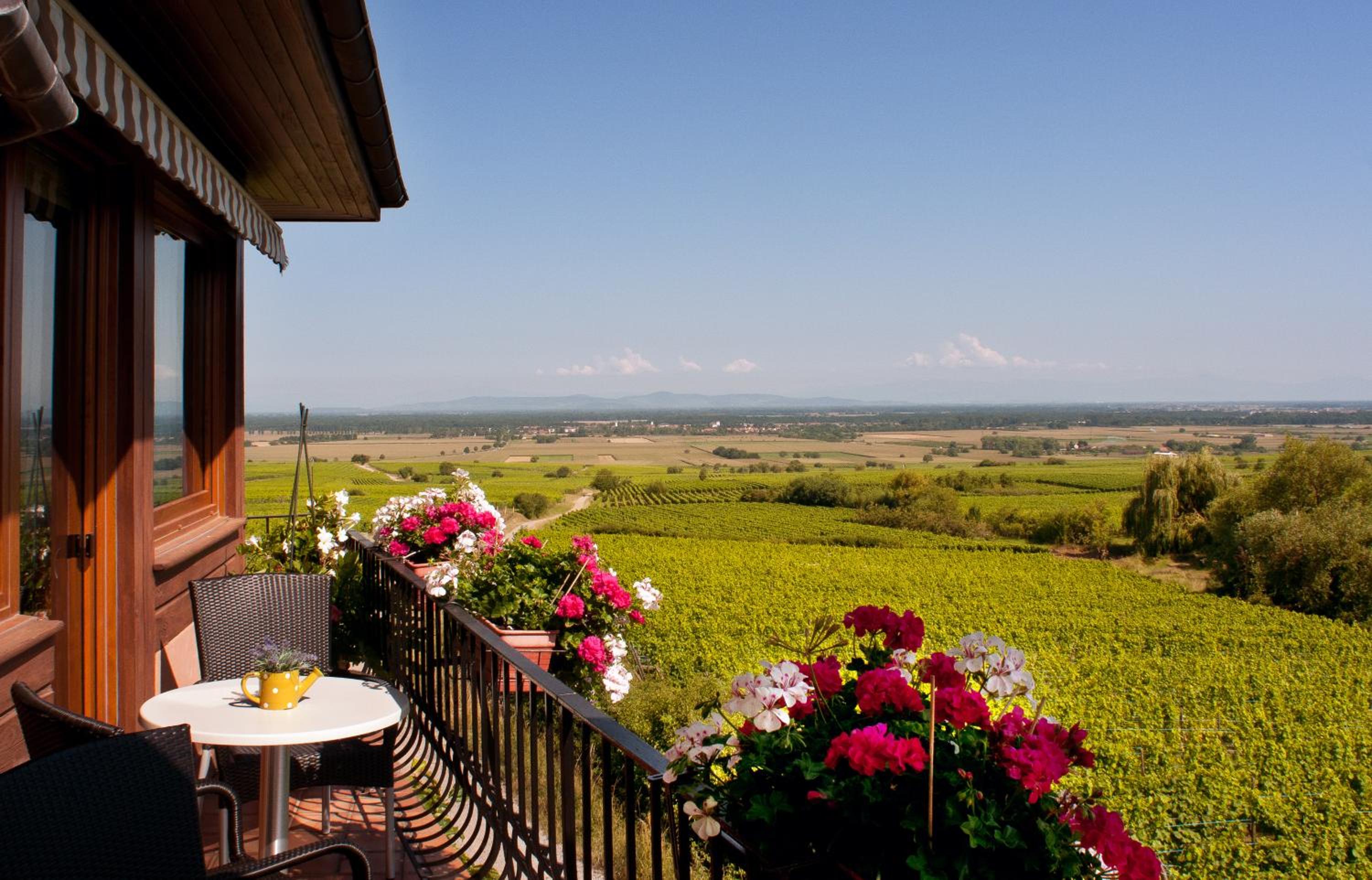 Nestled among vineyards on the Alsace Wine Route, Au Riesling offers breathtaking views of the Black Forest and Alsace Plain from its terrace.