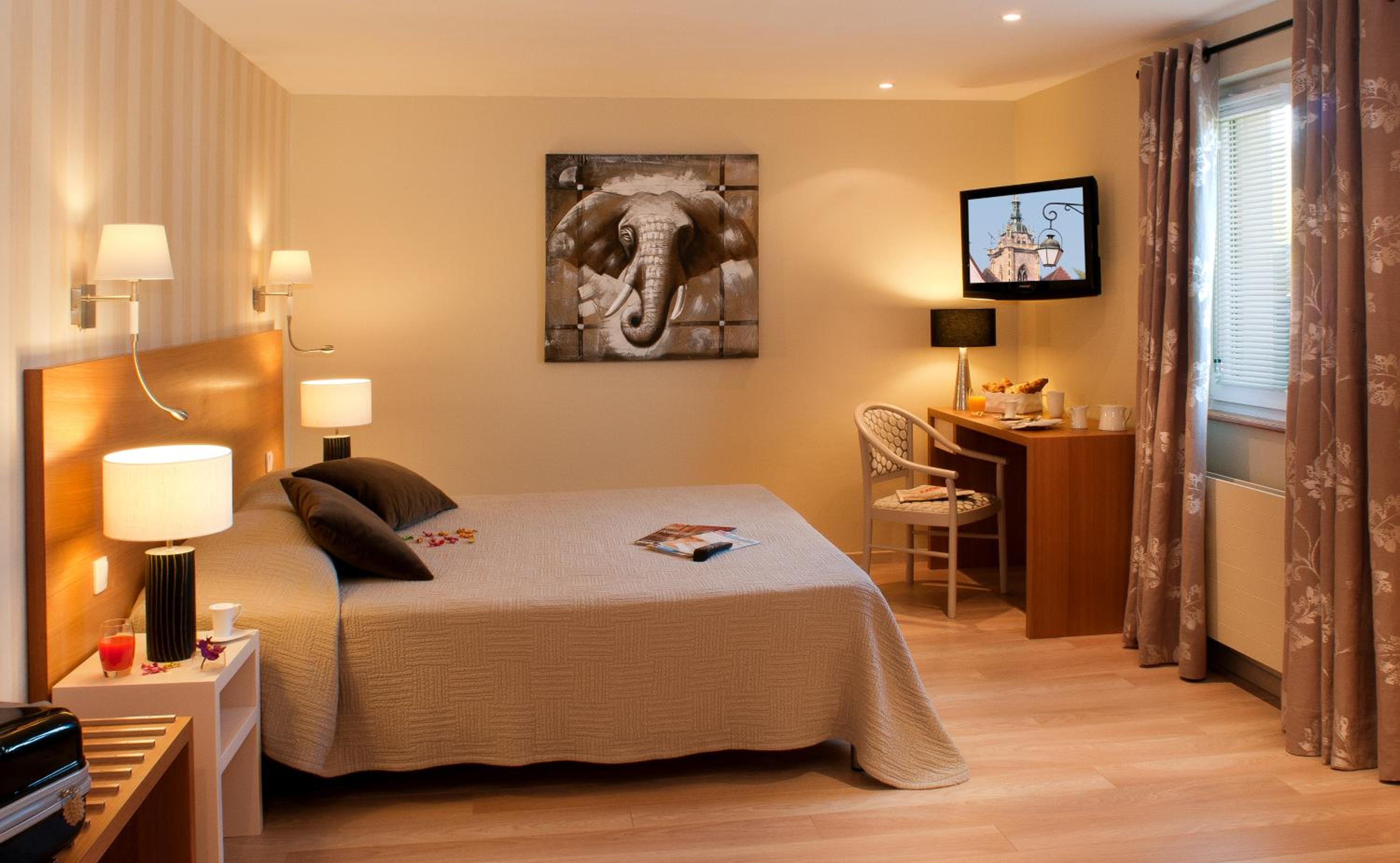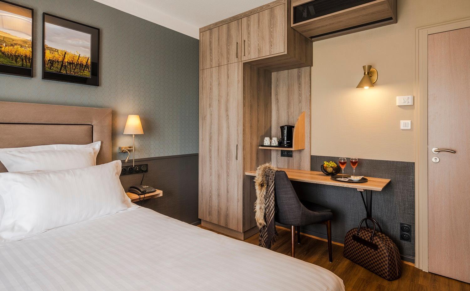 La vista meravigliosa sui vigneti alsaziani, il comfort del letto e della moquette, la spaziosità del bagno e del box doccia, la gentilezza del personale e la posizione dell'hotel comoda che permetteva di raggiungere in macchina in qualche decina di minuti Colmar, Riquewihr, Eguisheim, Kaysersberg, ecc