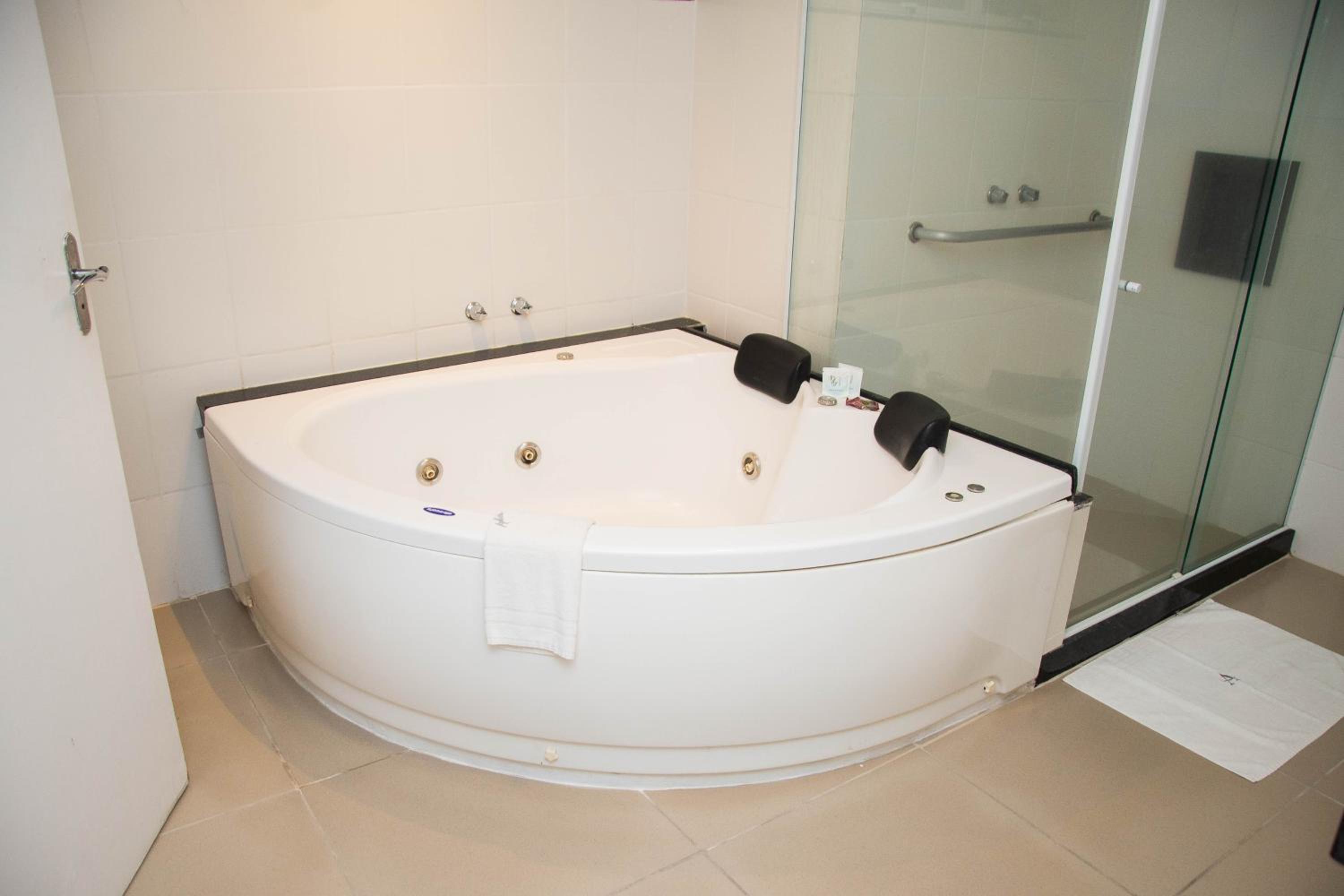 Tomada para carregar celular eh relevantes em ambos lados da cama. Adicionalmente rejunto do banheiro com aspecto bem ruim.