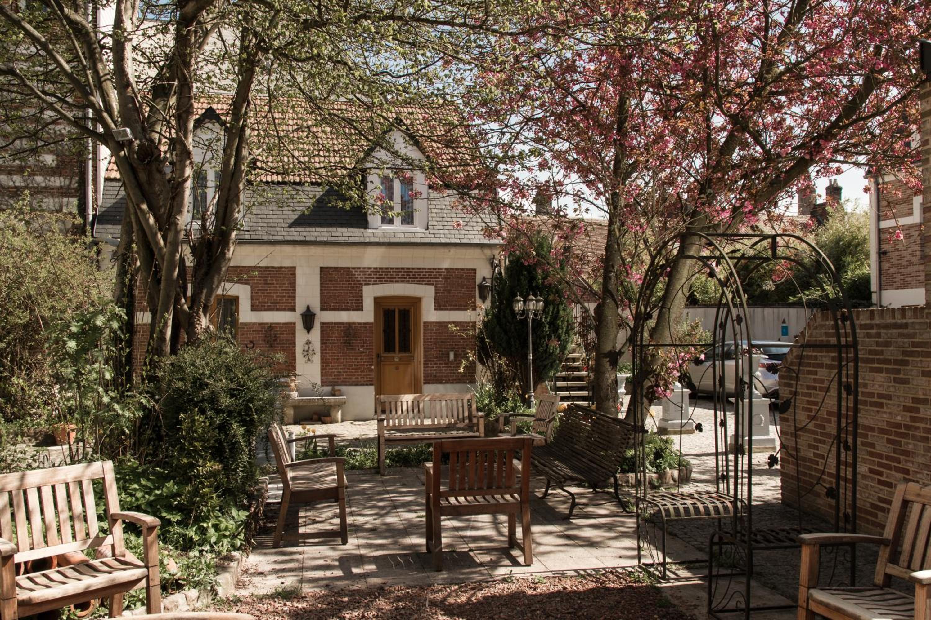 Tranquil Garden Oasis: Relax in our flower-filled courtyard garden, a serene escape from the bustling town center. Perfect for unwinding after a day of exploring the nearby Le Touquet Paris Plage.
