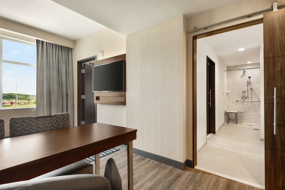 We loved that our dog was welcomed and there were grassy areas to walk him. Happy hour had great wine selections and snacks. Breakfast was amazing, could not have asked for better, and it was free! We had connecting rooms, so we enjoyed having the suites for visiting. The staff were so pleasant and accomodating, and very efficient. We will definitely stay here again!