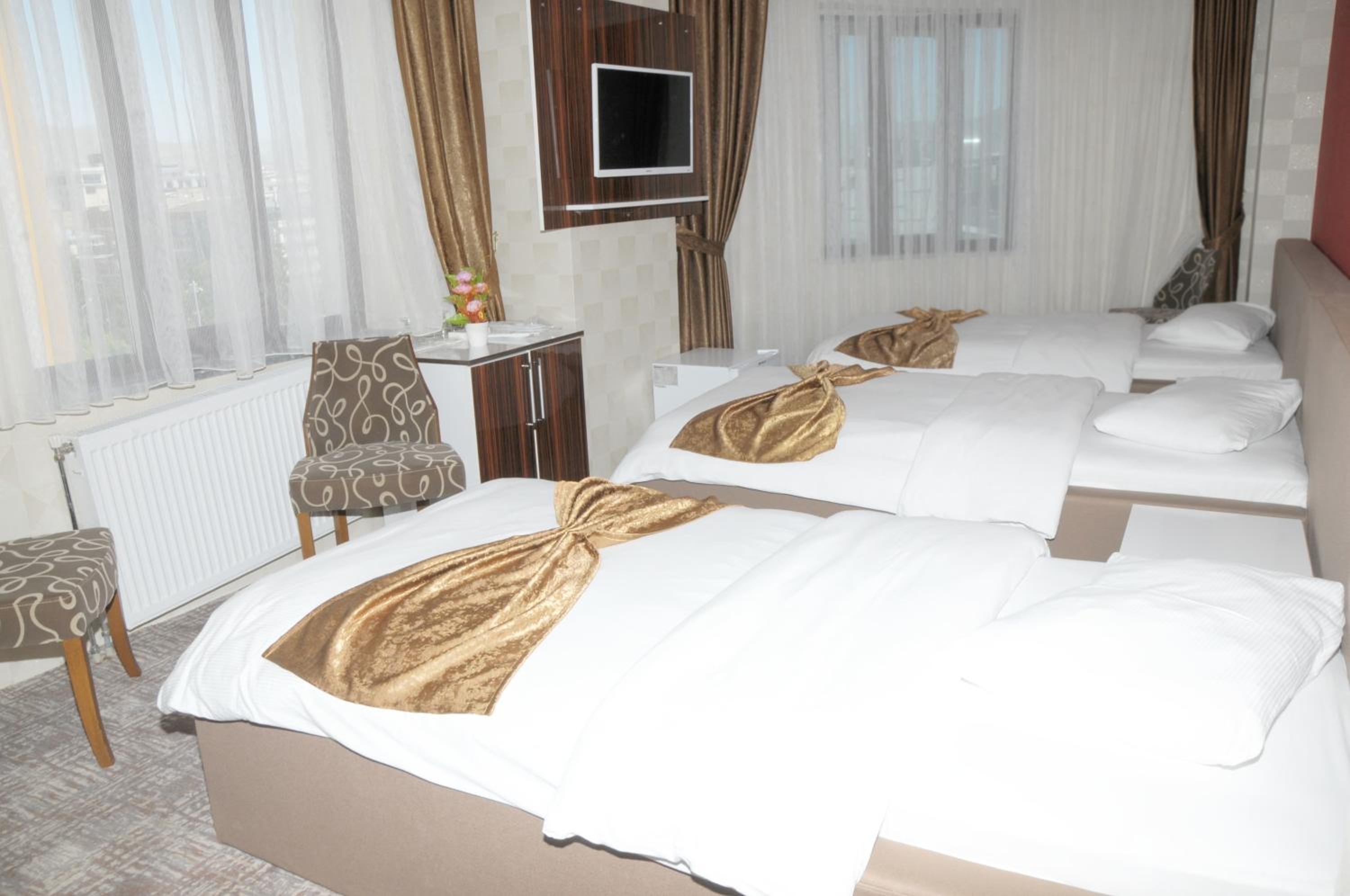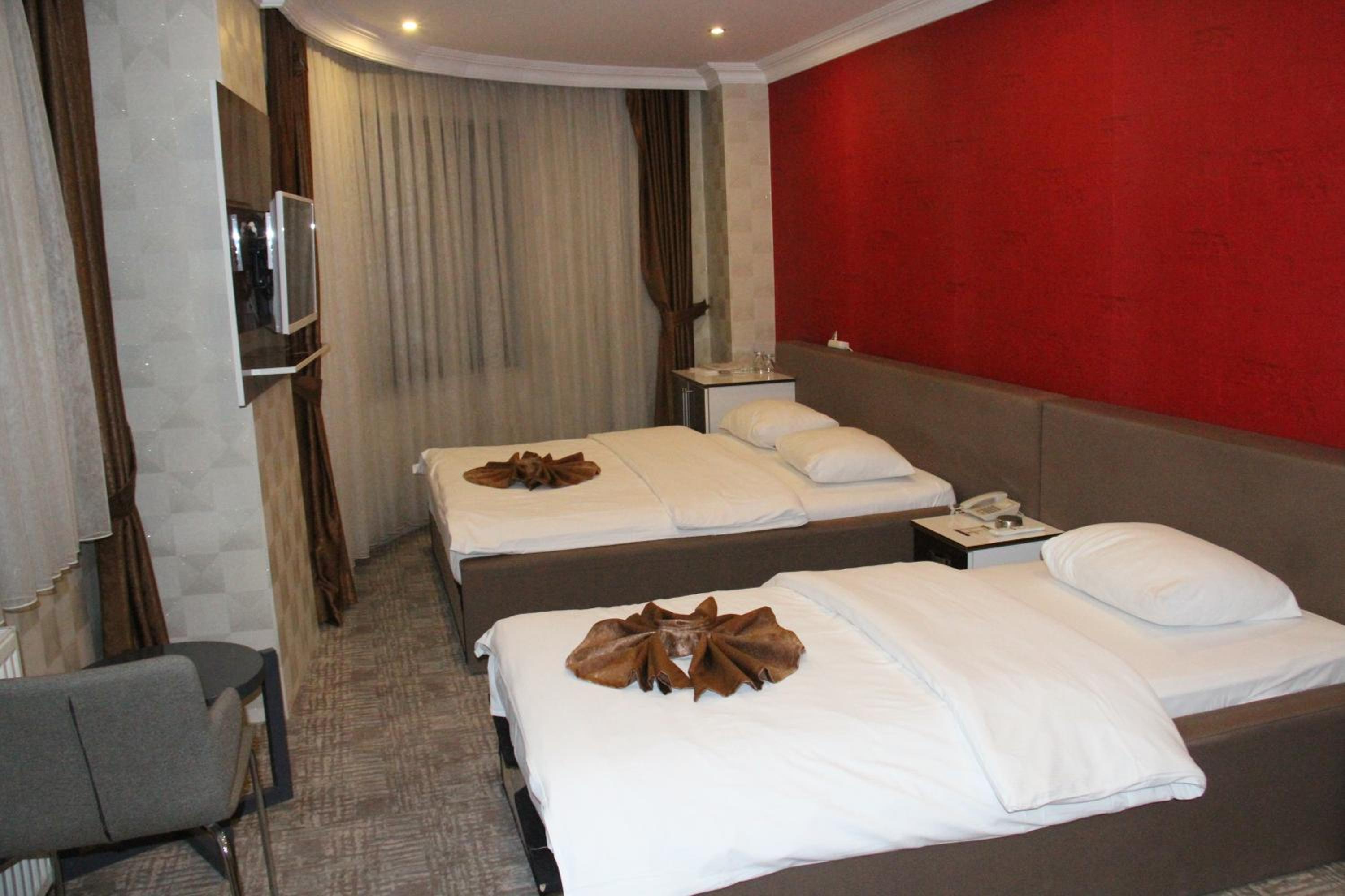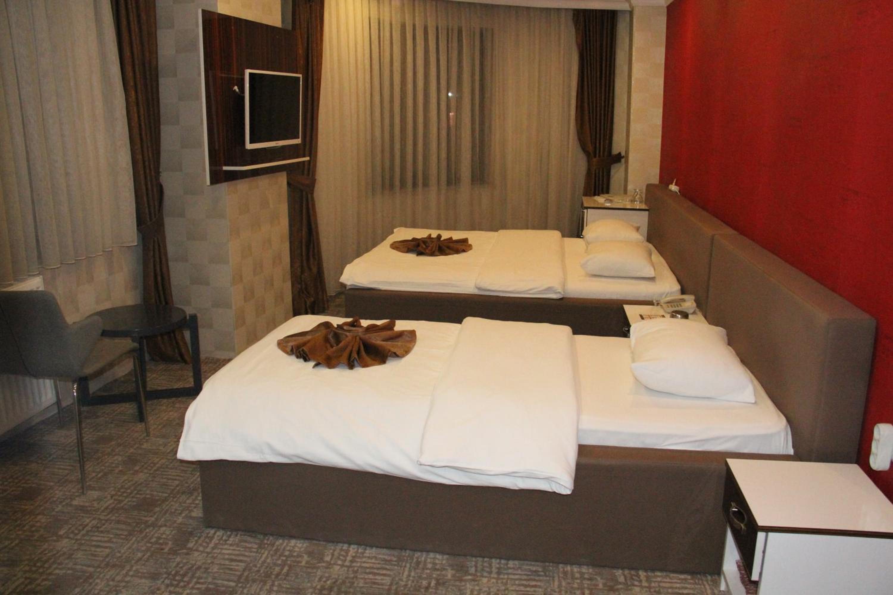 Hotel Dosco in Van offers elegant rooms with minibars, seating areas, and modern amenities. The private bathrooms are equipped with all essentials for a comfortable stay.