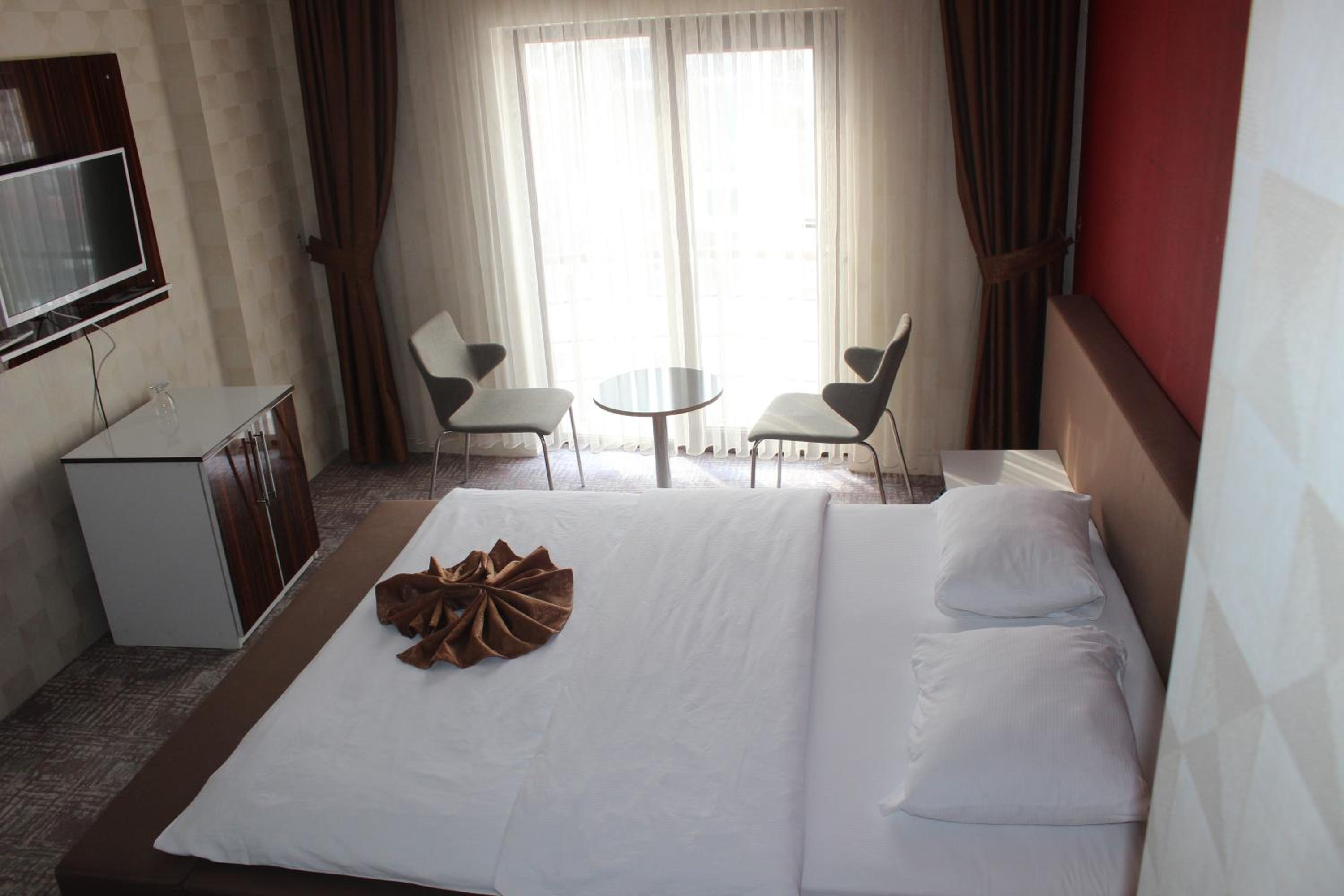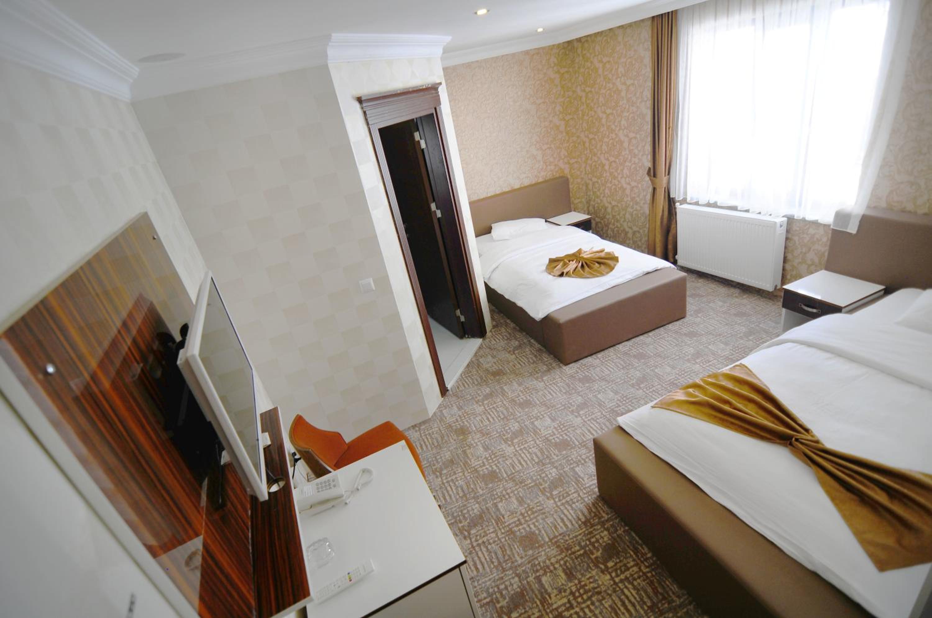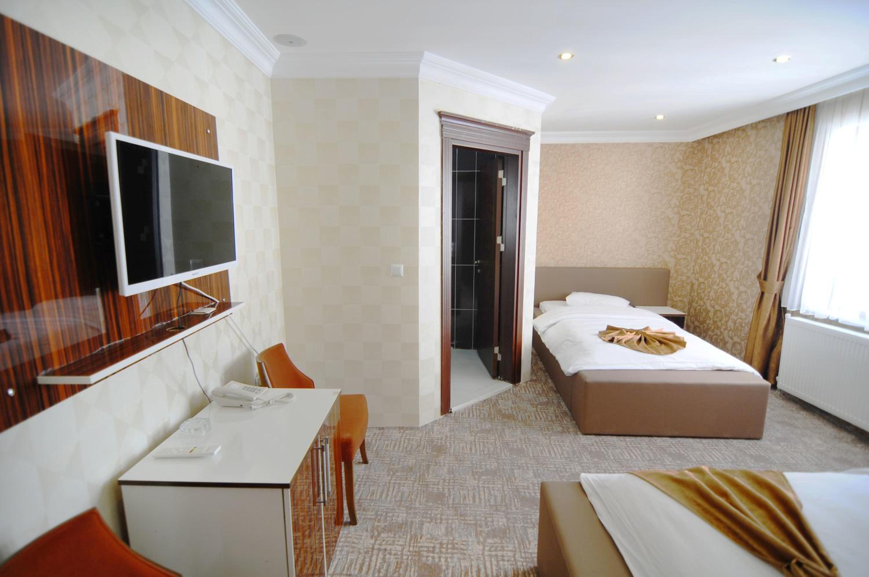 Hotel Dosco in Van offers elegant rooms with minibars, seating areas, and modern amenities. The private bathrooms are equipped with all essentials for a comfortable stay.