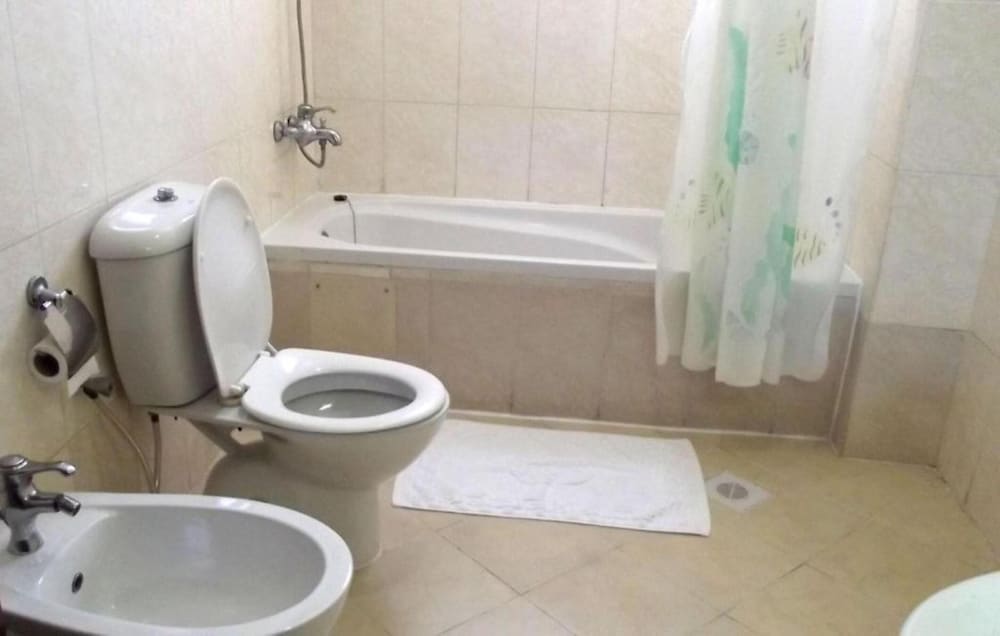 This is one of the nicer hotels in the price range. The location is pretty good, the rooms are HUGE, and the bed was one of the most comfortable I've had in Bahrain. I had trouble with the satellite and found the electrical outlet placement annoying. However, that is not a real reason to complain. I would definitely stay here again with friends. Good price, location, good staff. The kitchen was well stocked, and the staff was helpful with finding me a corkscrew.