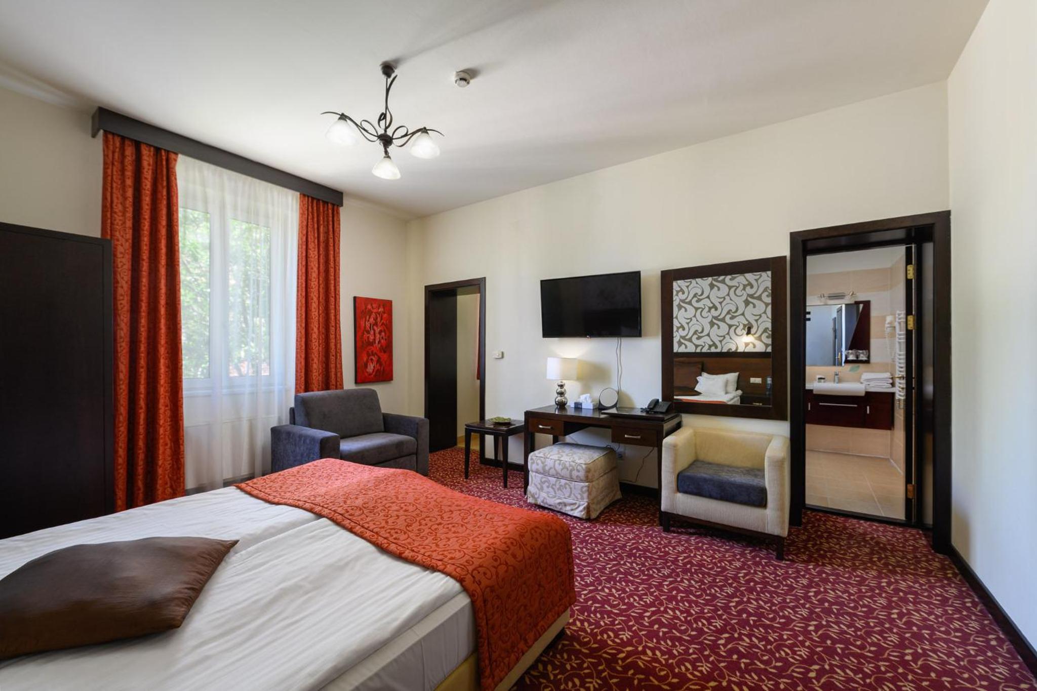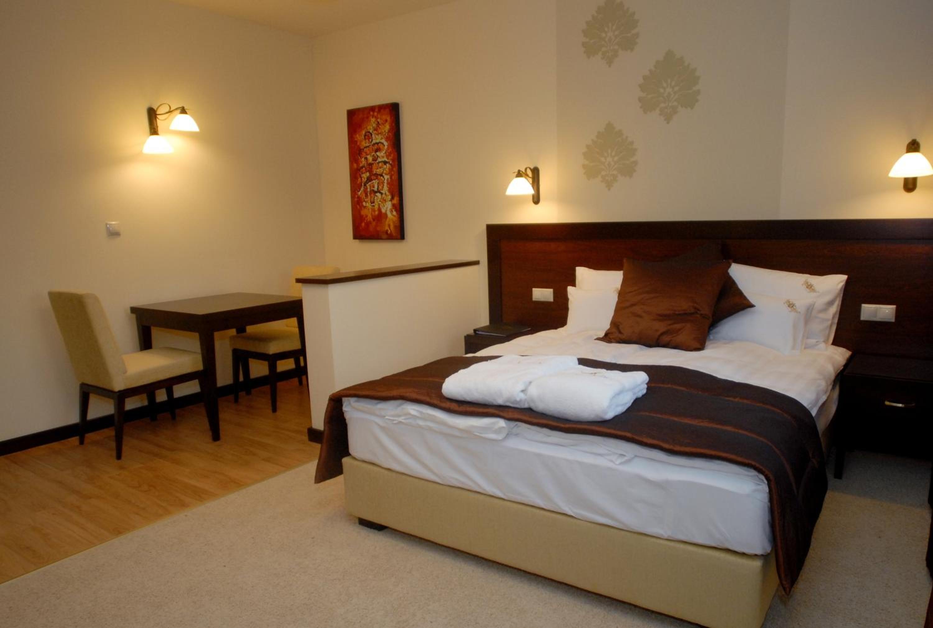 Hotel Aurum in Hajdúszoboszló offers air-conditioned rooms with spacious layouts and quality furniture for a comfortable stay.