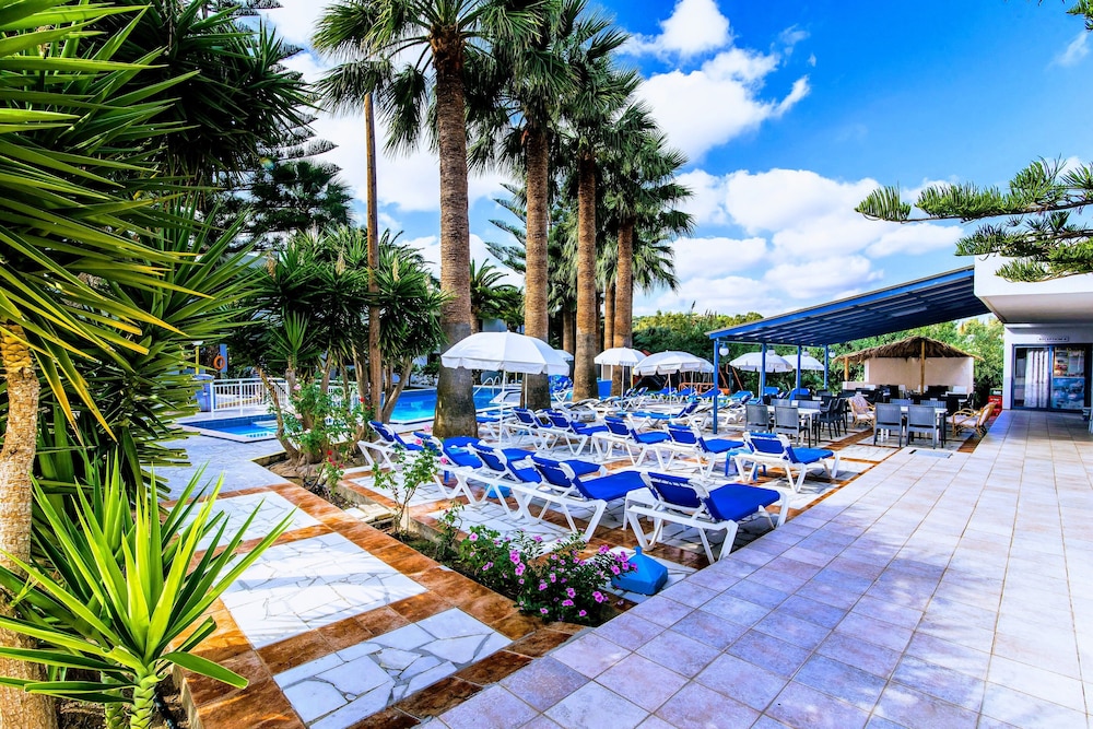 A tropical paradise ! Wonderfull to look out on all the mature tropical plants in the fabulous garden, the palm trees around the pool have been there 30 years. The family who own the hotel were so friendly showing us round and answering all our questions on the plants. Nothing was too much trouble, drinks and food by the pool were great. We visited the 9000 year old Knossos palace. The location is perfect for a quiet stay and a short walk down to the fabulous Hersonissos harbour, we were so pleased to be back there for our 30th Wedding anniversary, a really great stay thank you !