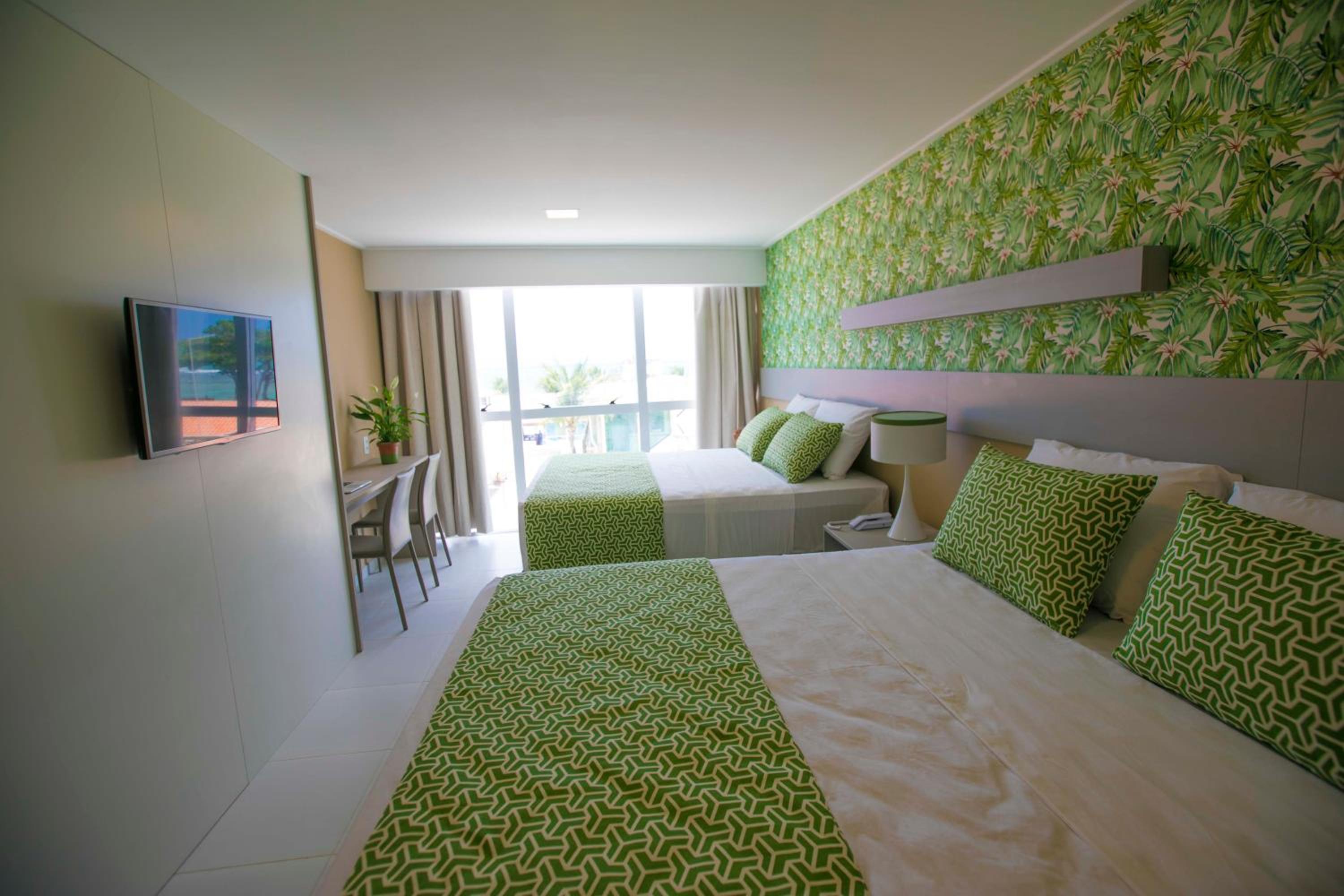 Baía Branca Porto de Galinhas offers air-conditioned rooms with modern amenities, ensuring a comfortable stay for guests. Each room is equipped with a flat-screen TV, plush bedding, and a private bathroom for ultimate relaxation.