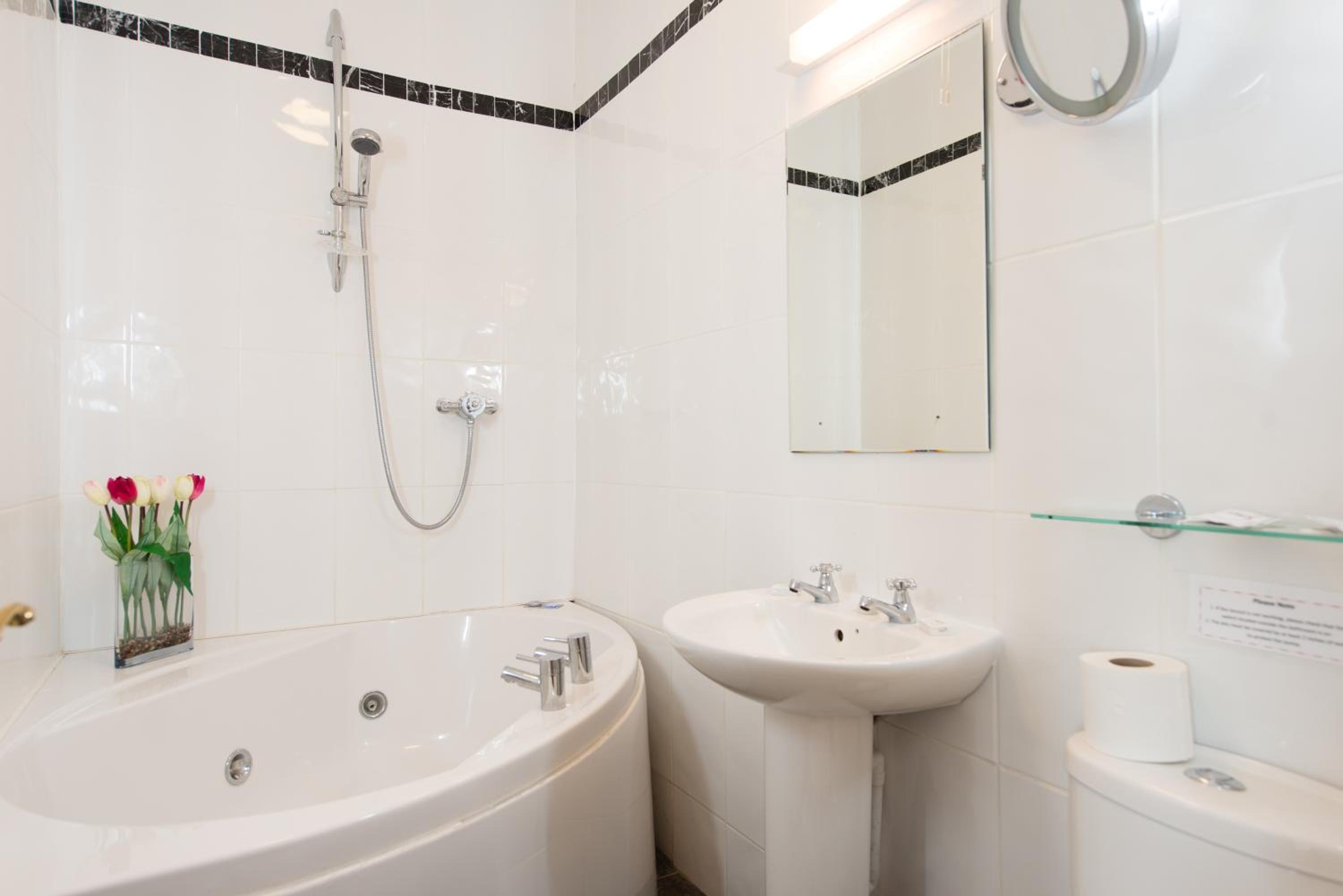 Room would benefit from updating and a new carpet - existing had the appearance of being well used. Bed was not that comfortable - a new mattress would be appropriate. Bedside lamps not working and toilet roll holder in shower room was broken. Could not adjust volume on tv control - far too loud and therefore did not watch tv.