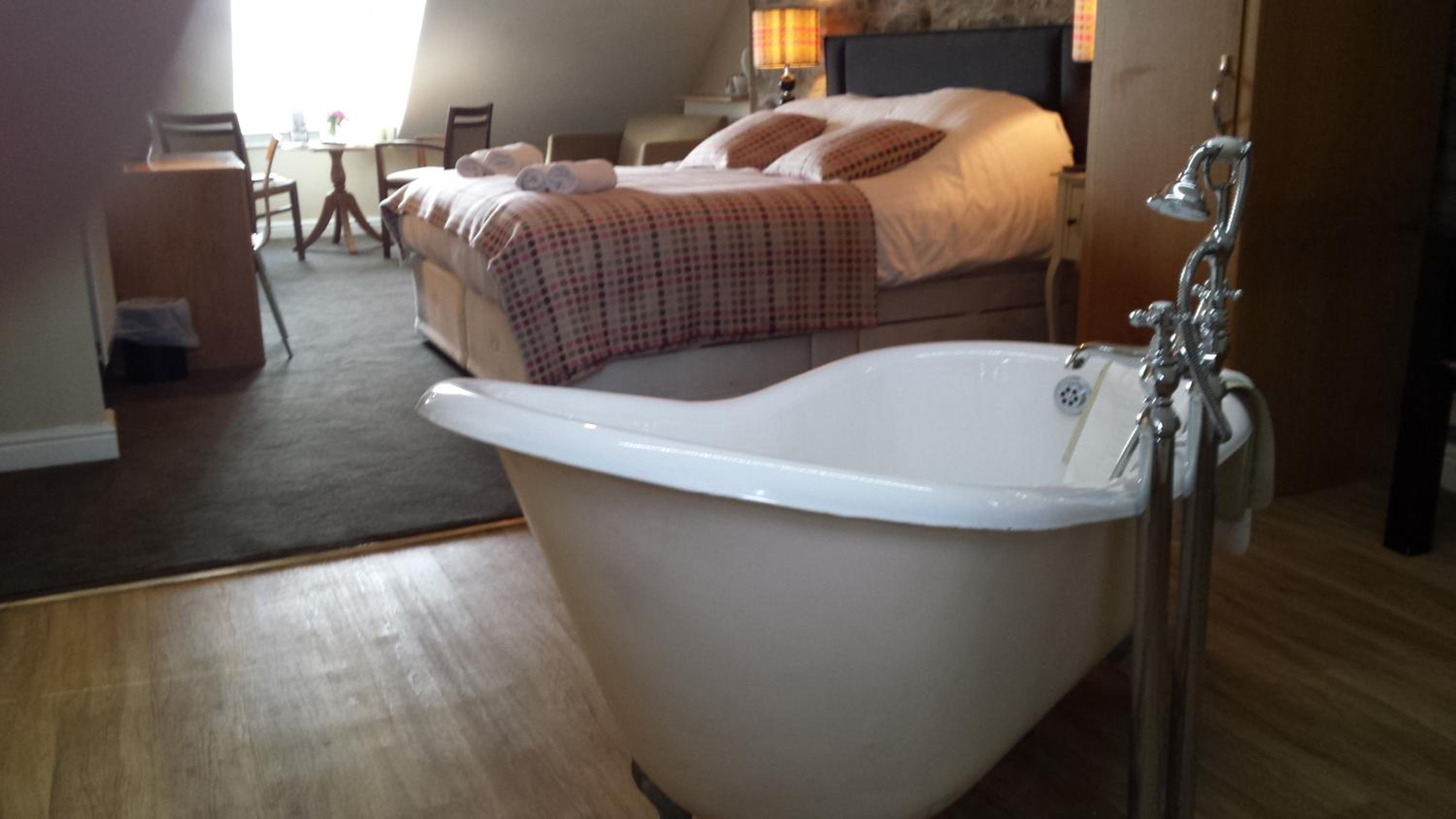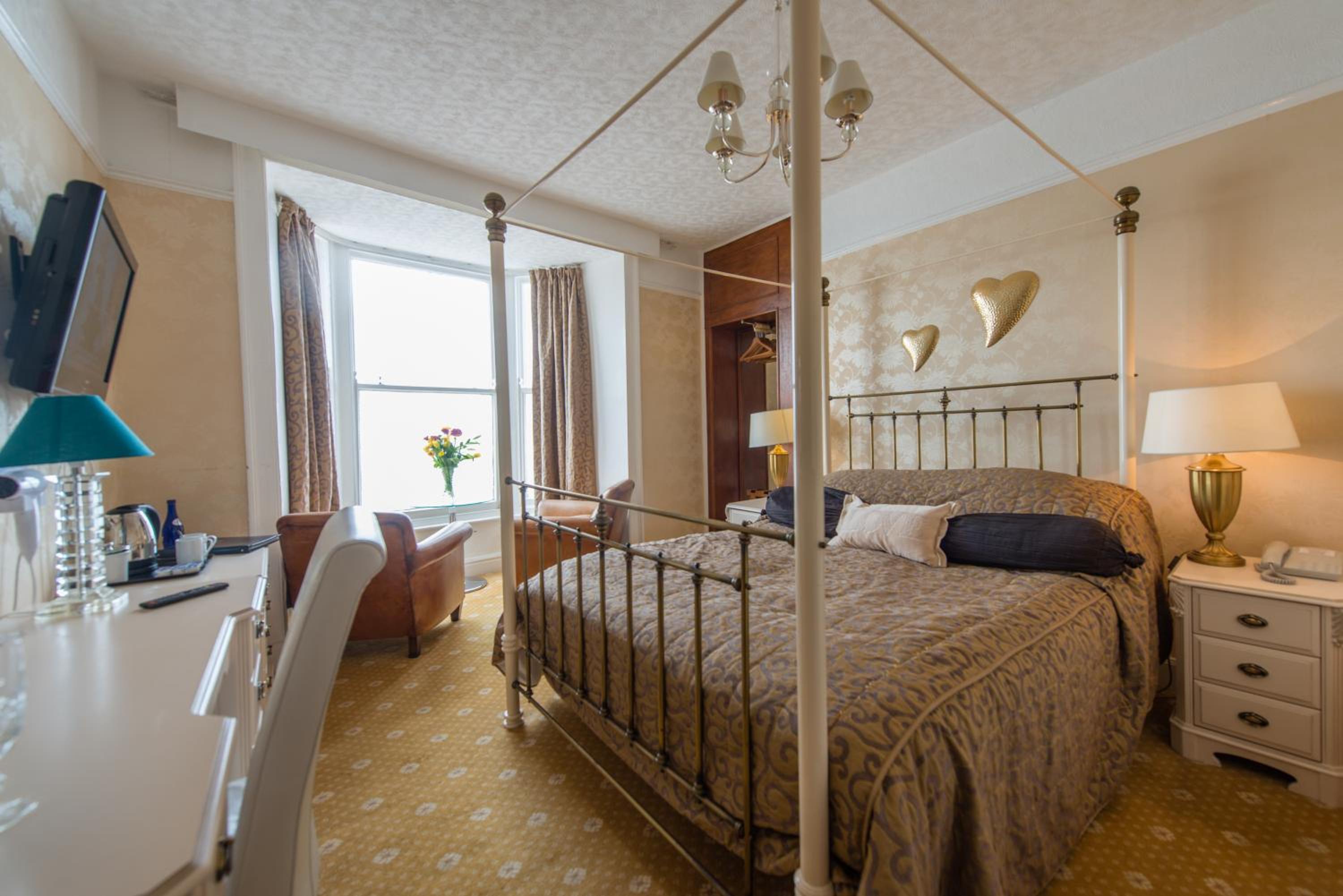 Indulge in comfort with rooms featuring TVs, private bathrooms, and some even offering four-poster beds and spa baths. Wake up to scenic views of the bay and stay connected with complimentary Wi-Fi.