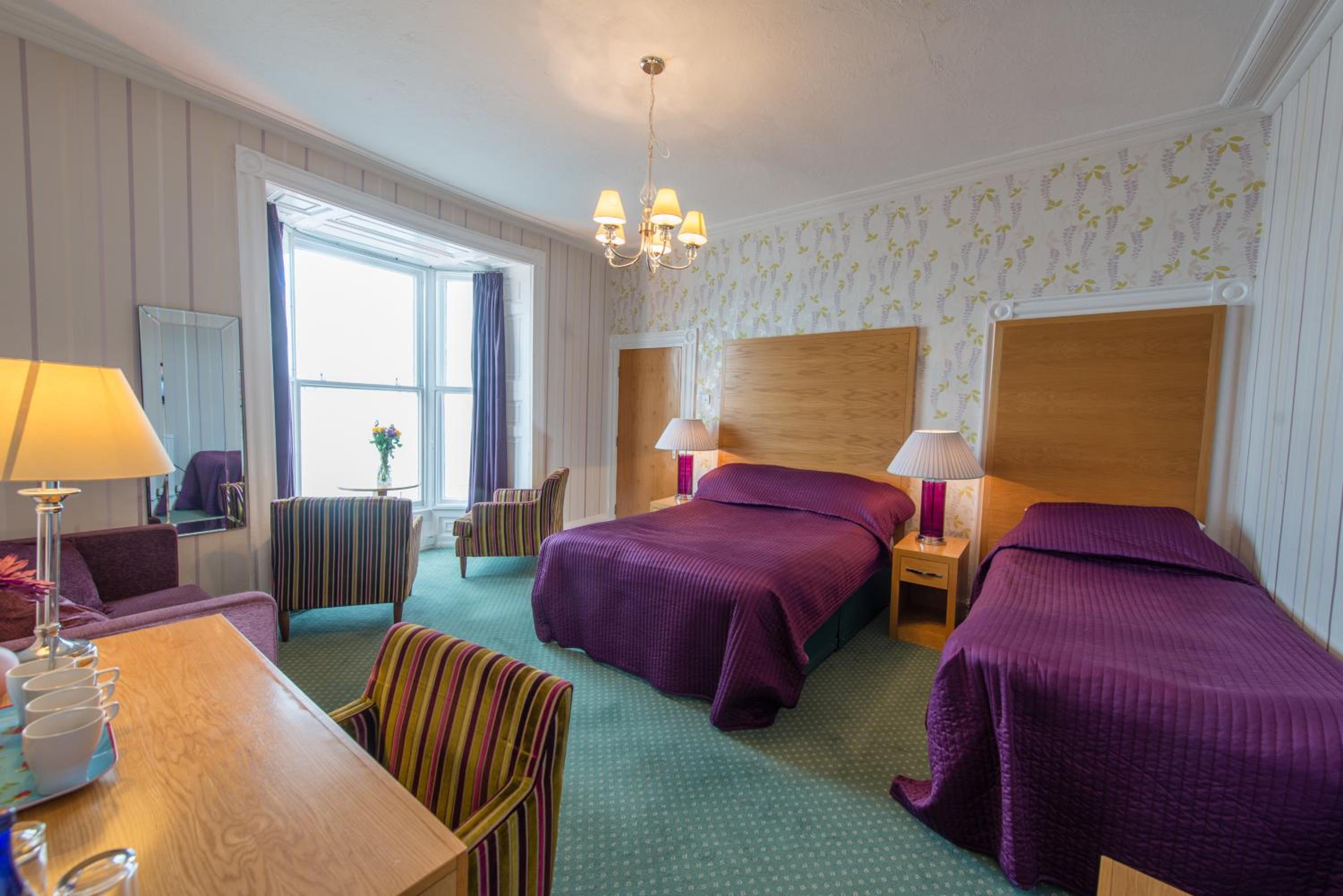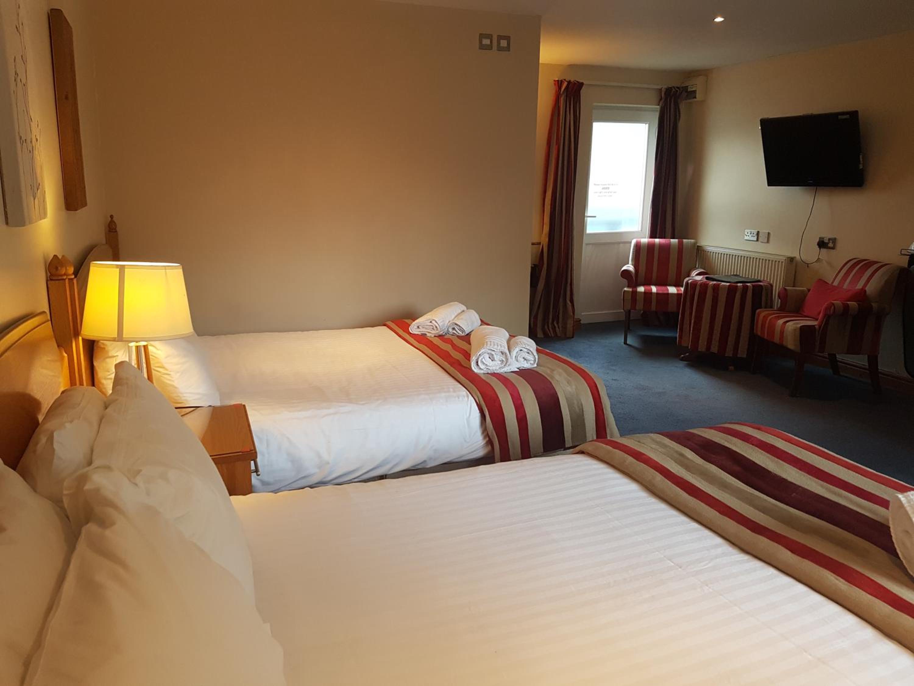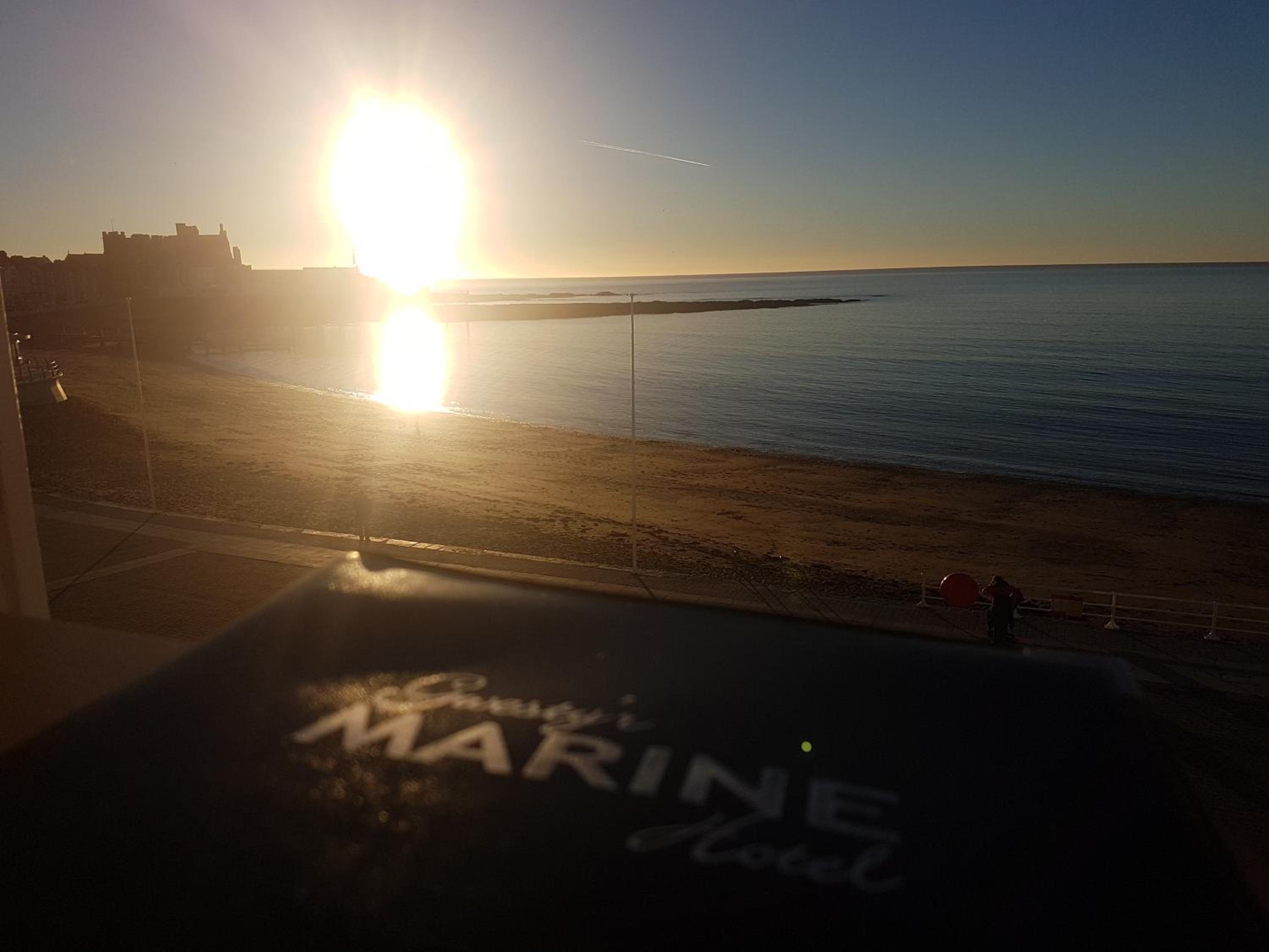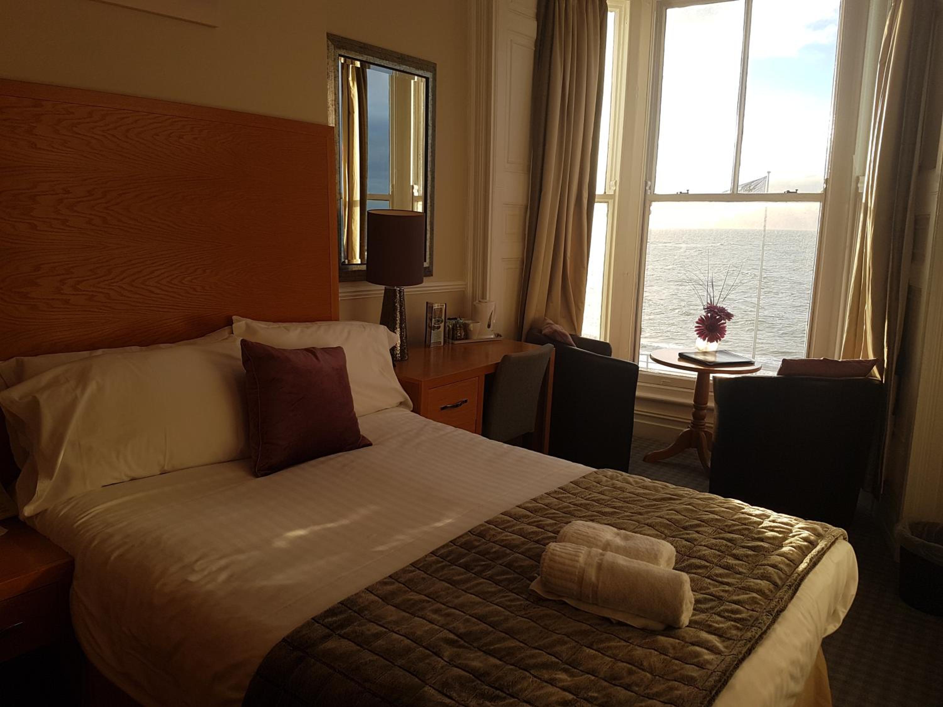 Warm welcome at reception on arrival, well equipped room and en-suite. No noise in hotel during the night. Right on sea front with view out to sea. Only stayed for one night with no meals although dining room looked very clean, tidy and well presented.