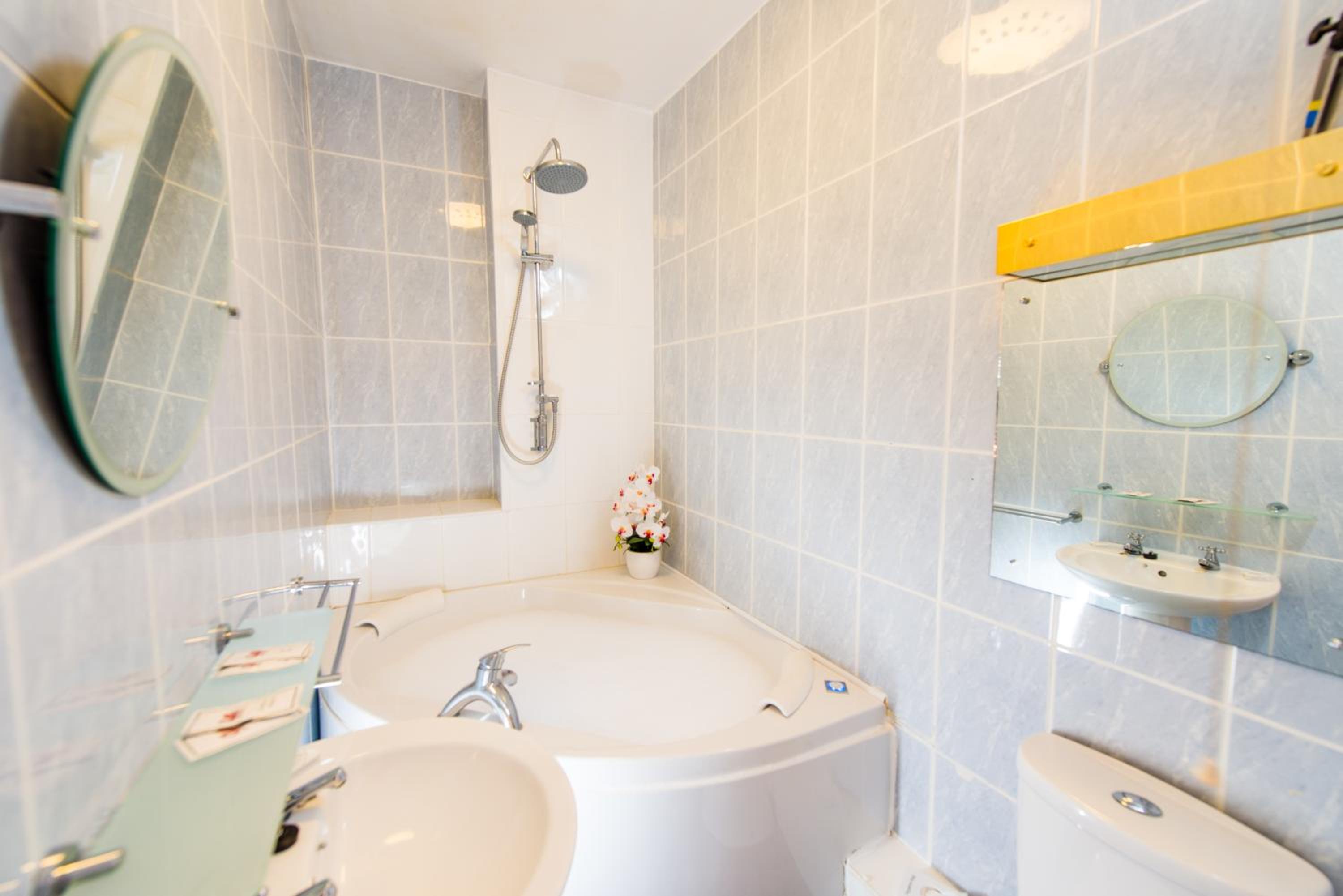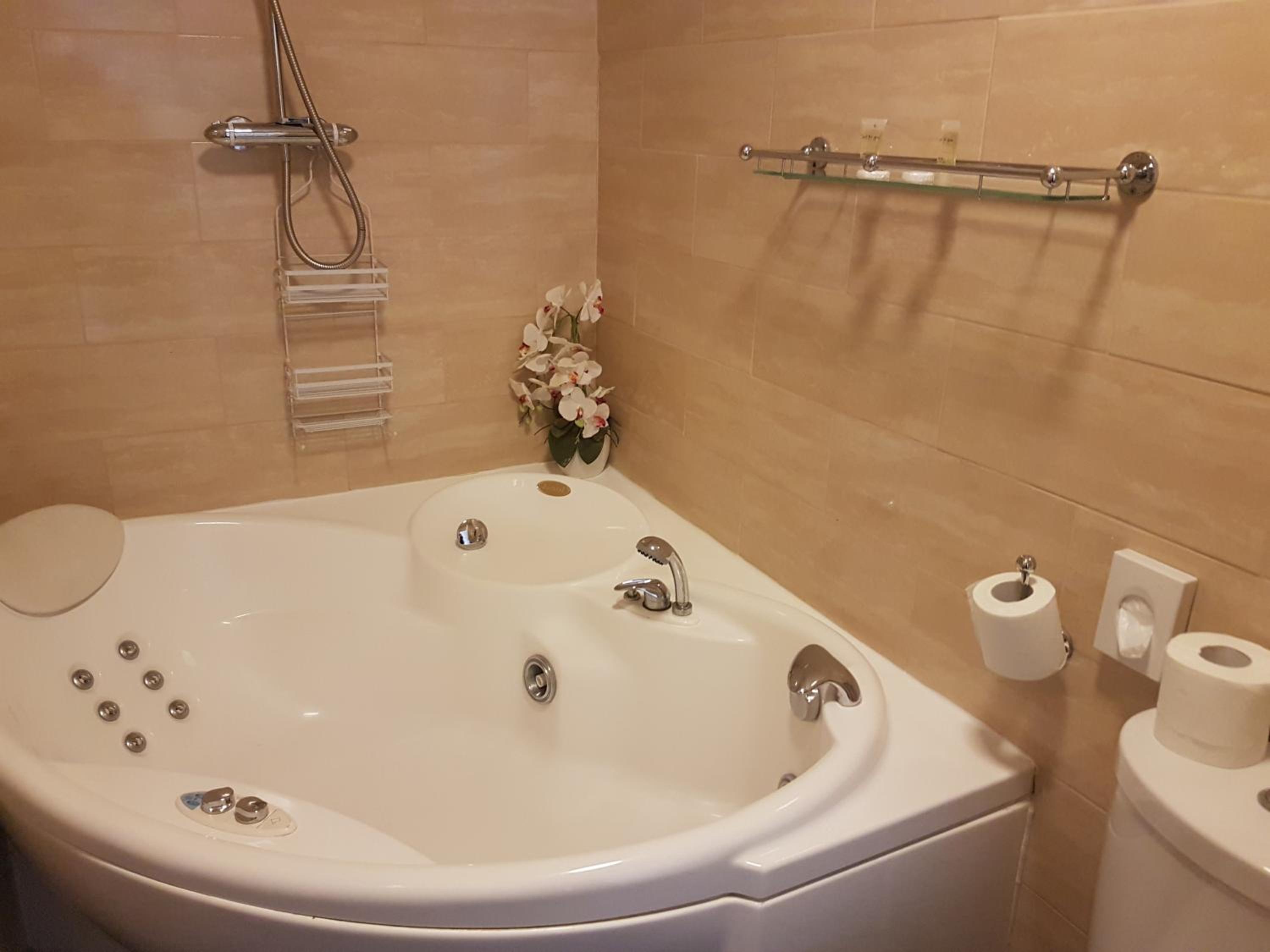 The view and the shower (after getting to know how to change the temperature there is no indication for the shower where is hot and cold and the shower head shouldn't be like that).