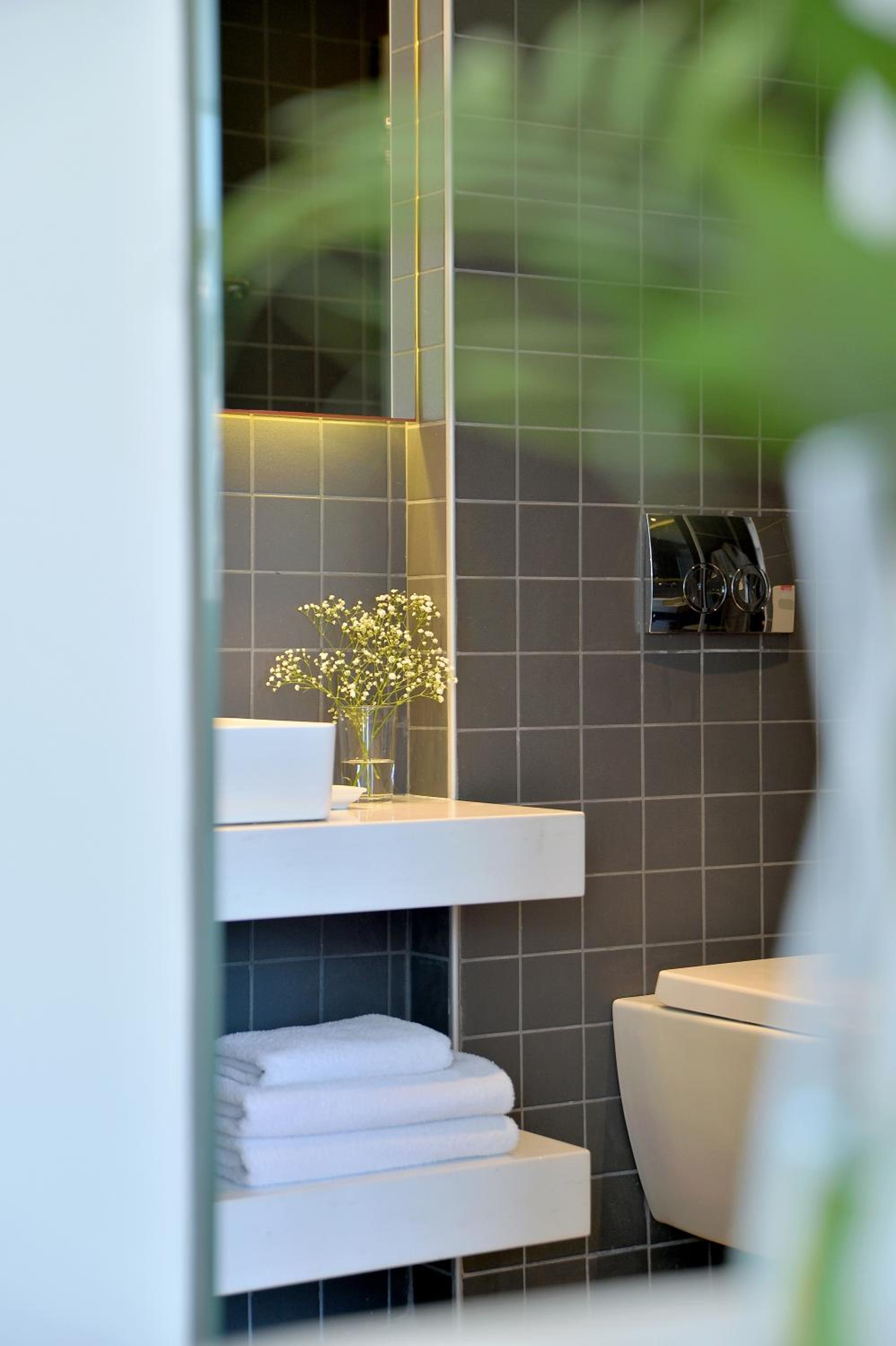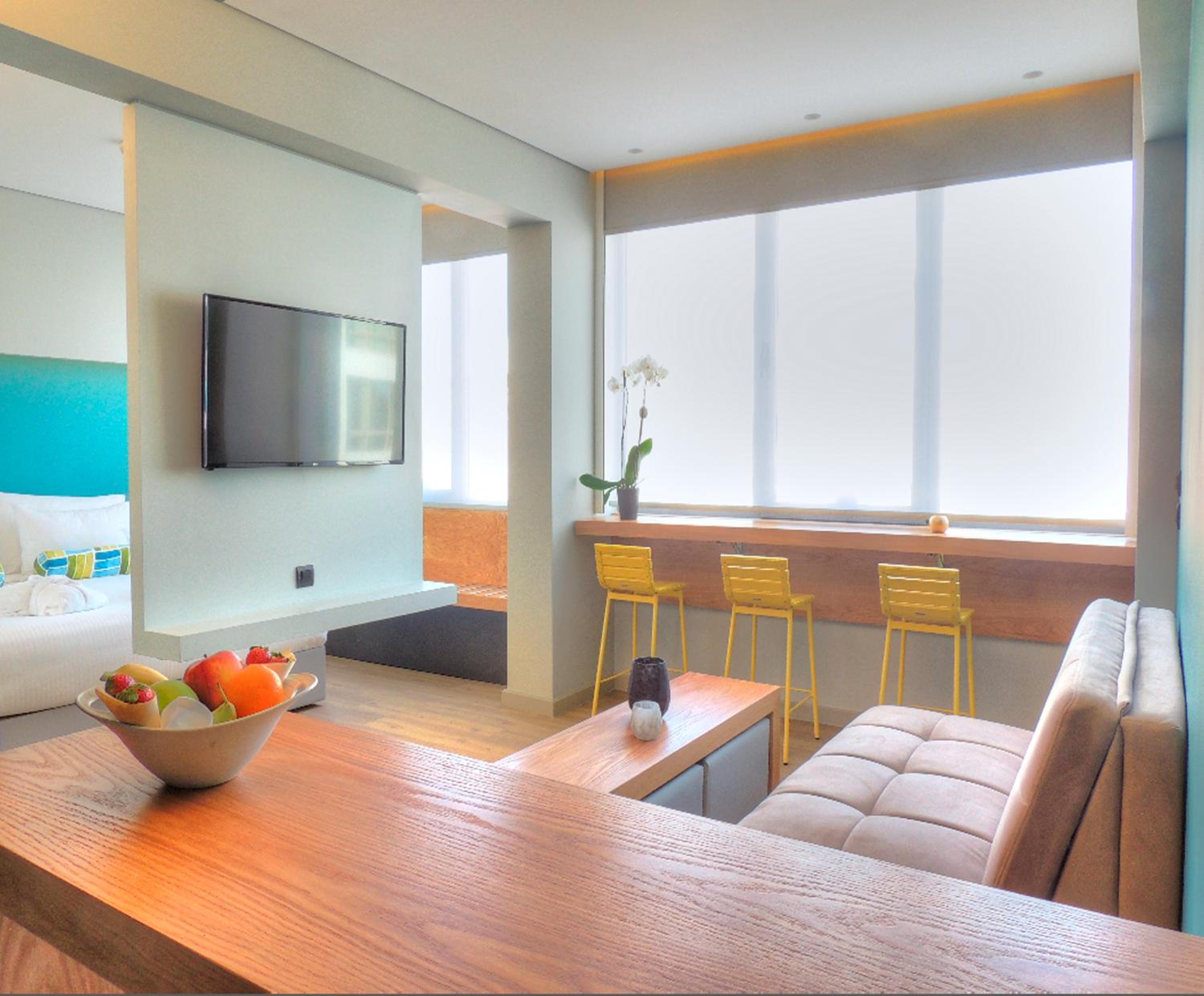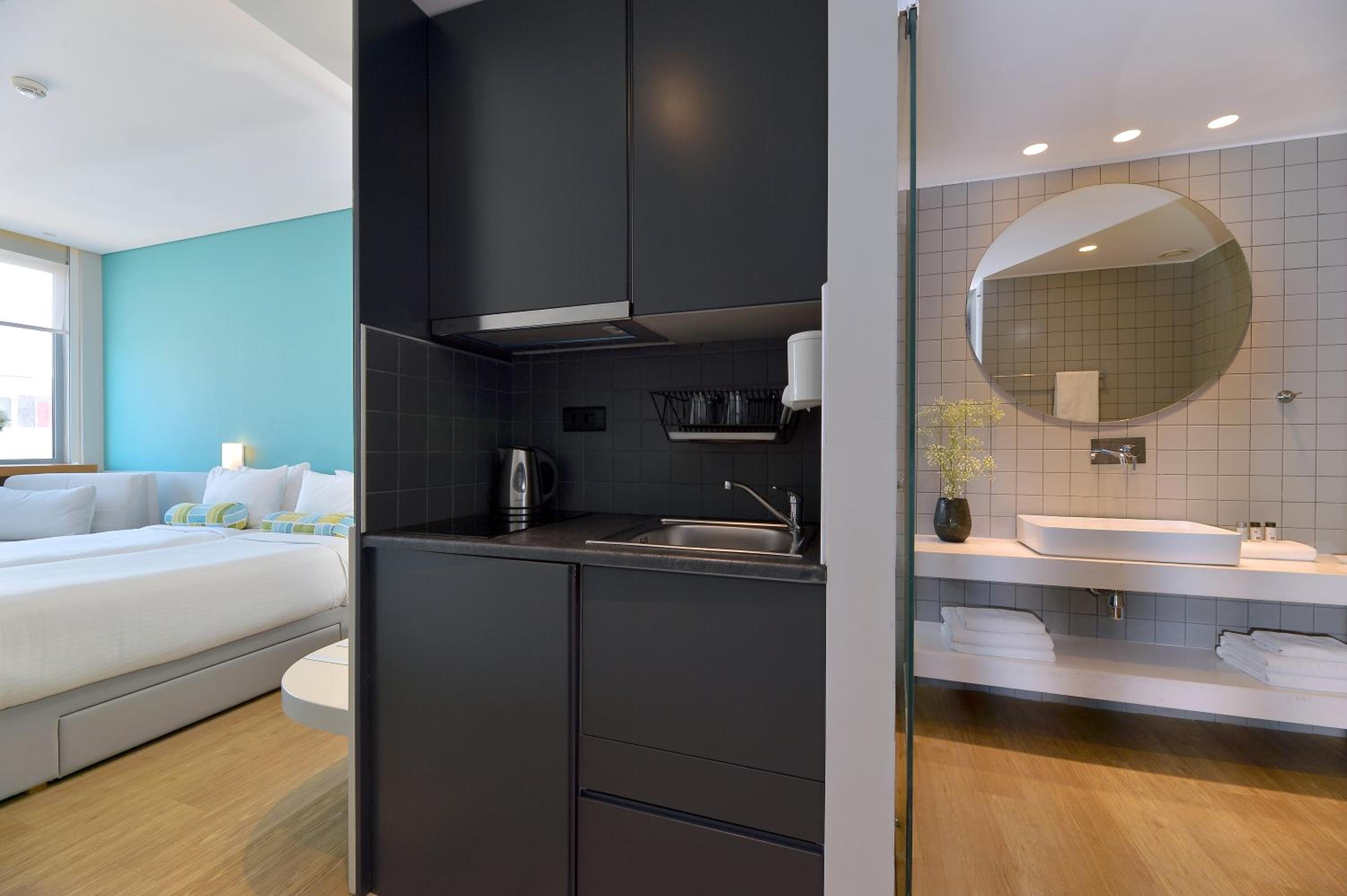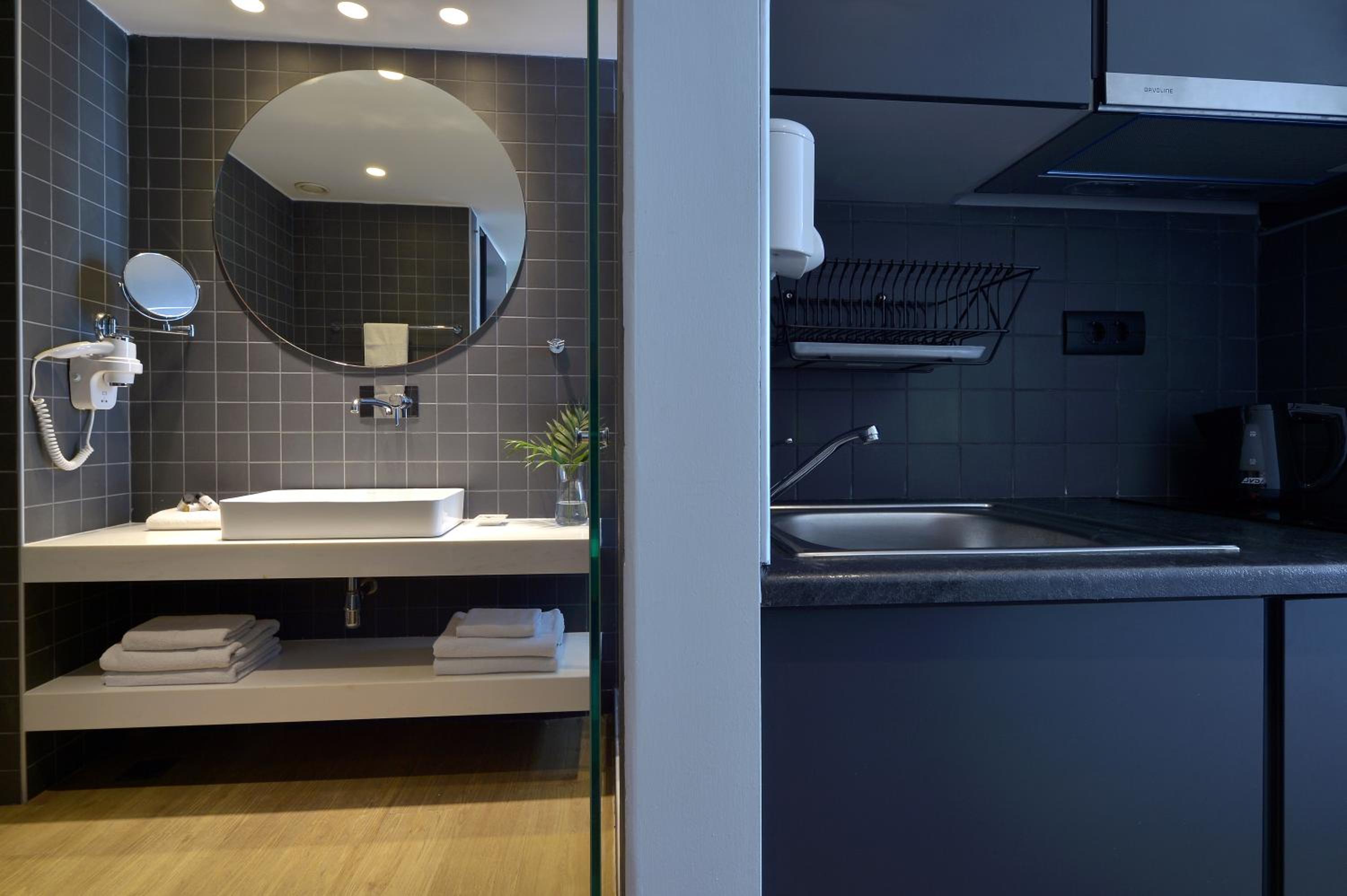 Experience comfort and convenience at Athenaeum K 29, where each modern unit comes with a kitchenette and complimentary WiFi. The stylish design and modern amenities ensure a pleasant stay, including sleek hardwood floors, vibrant decor, and a modern bathroom with a walk-in shower.