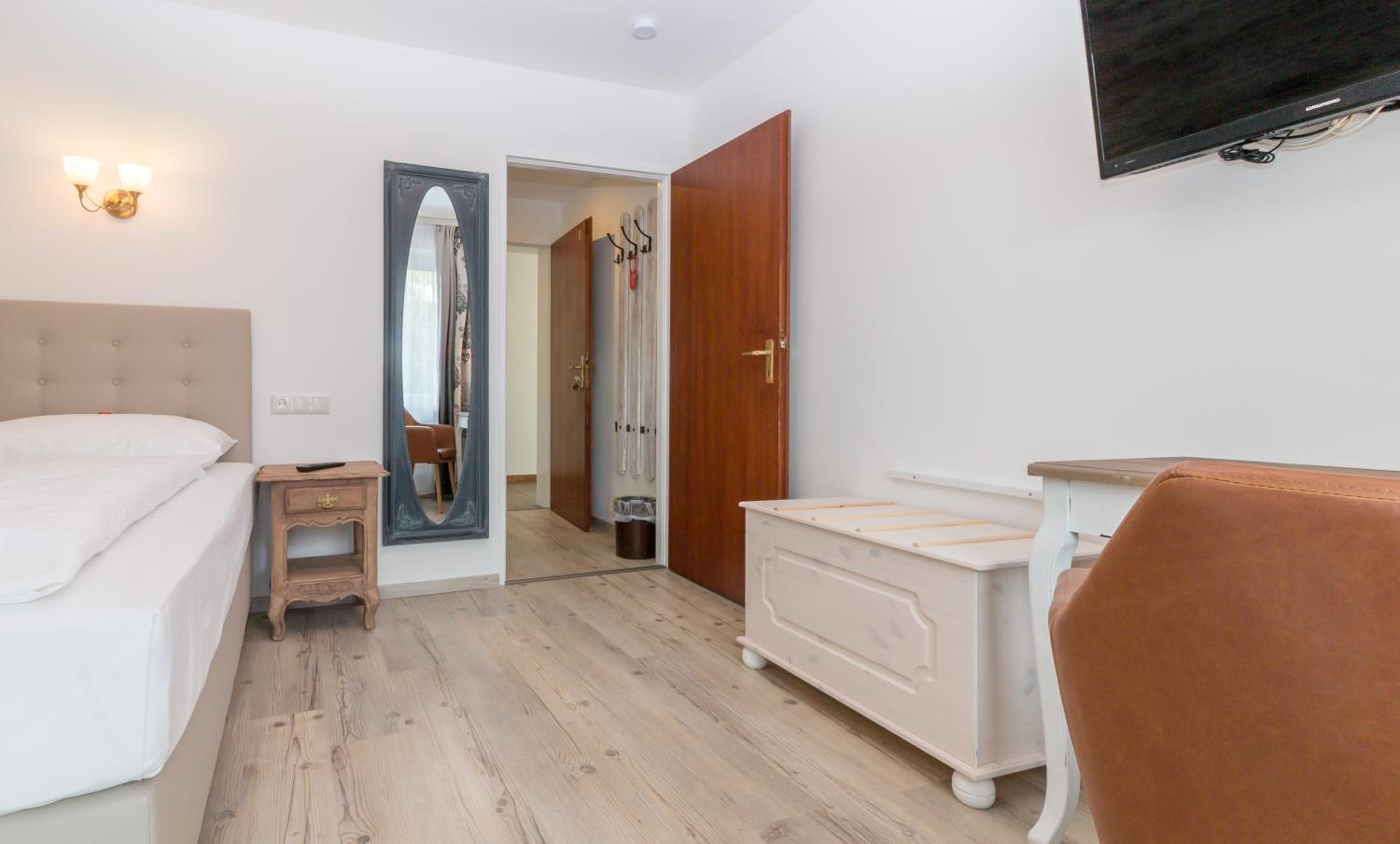 The Hotel Diana Garni offers warmly decorated rooms with a small fridge, safe, flat-screen TV, and private bathroom. Each room also features a balcony or terrace with garden views, providing a relaxing retreat for guests.