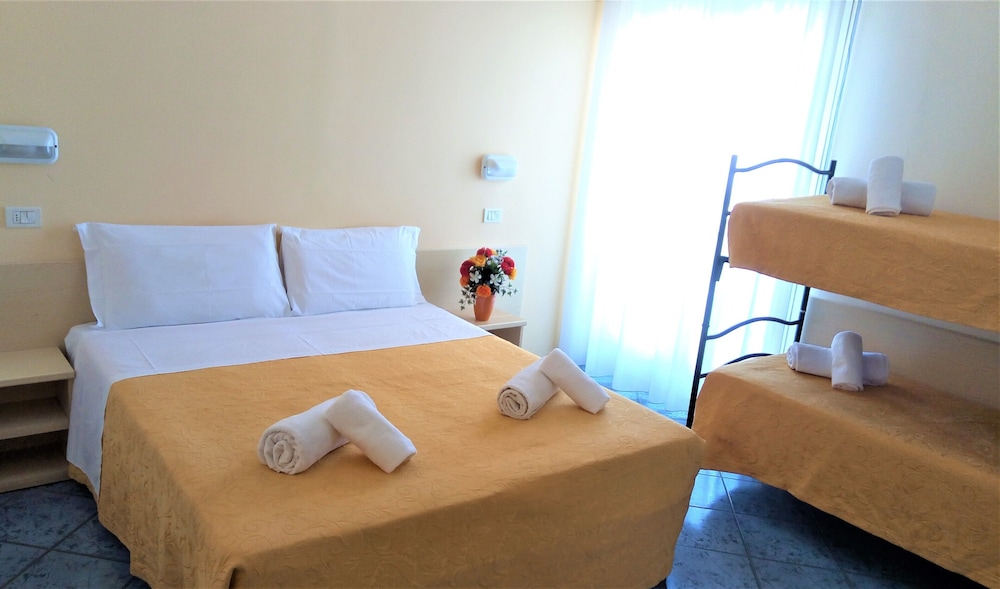 Un simpatico albergo vicinissimo alla spiaggia con un piccolo parcheggio privato. Pulizia della stanza molto insufficiente, tanto che ho dovuto chiedere un cambio di lenzuola appena arrivato e una bella dose di polvere sul pavimento.