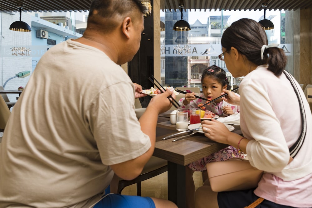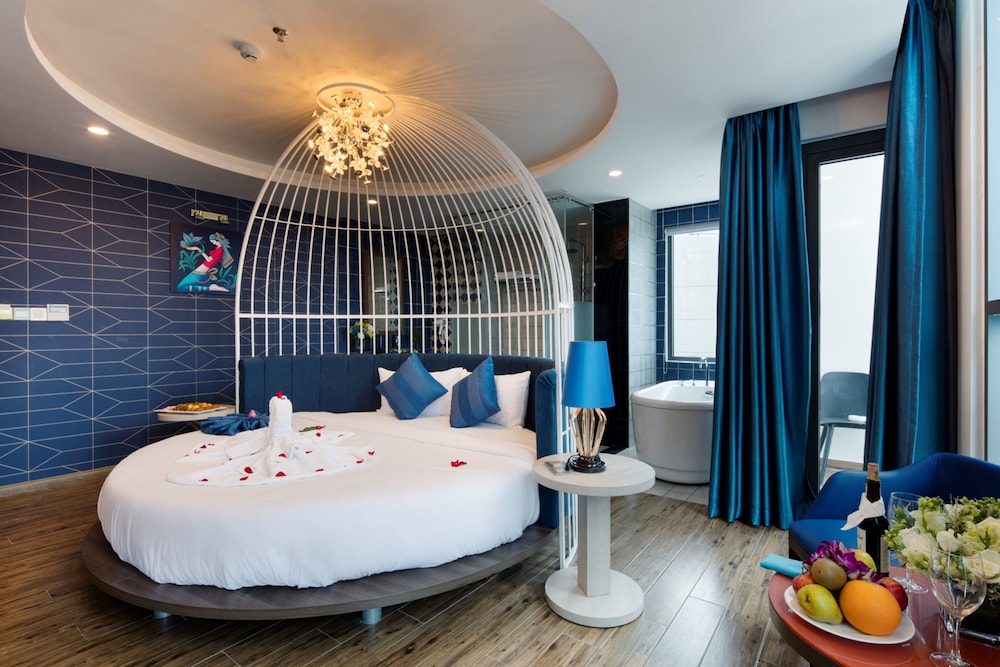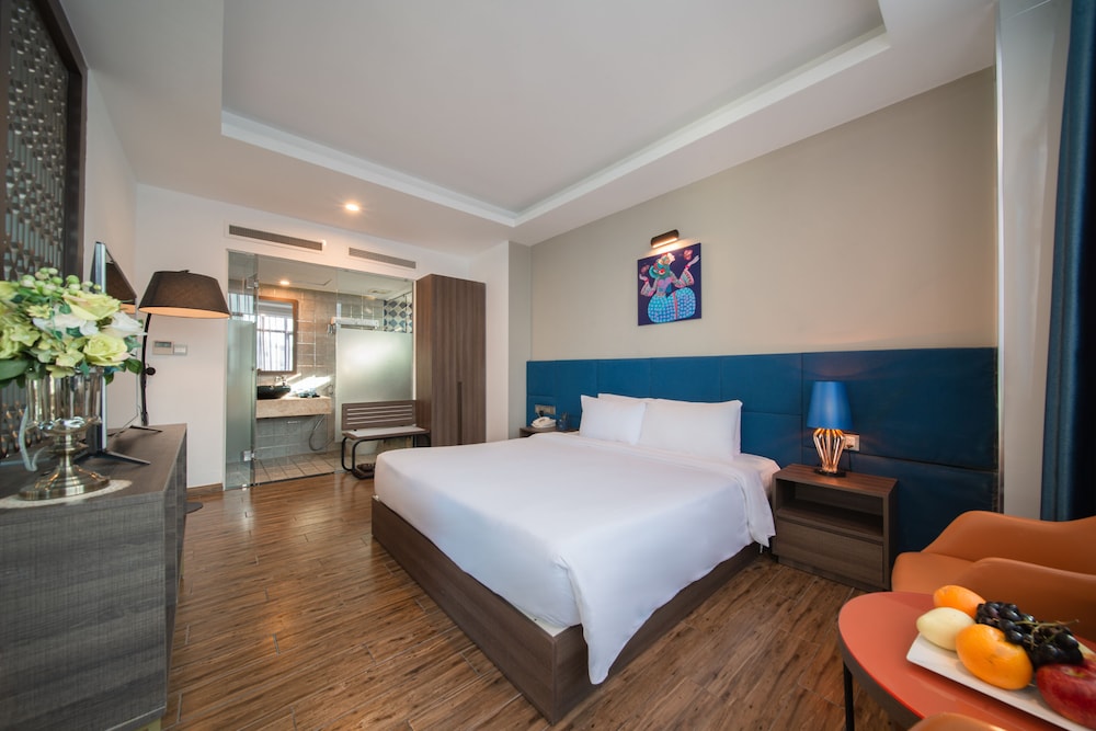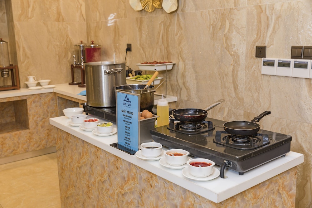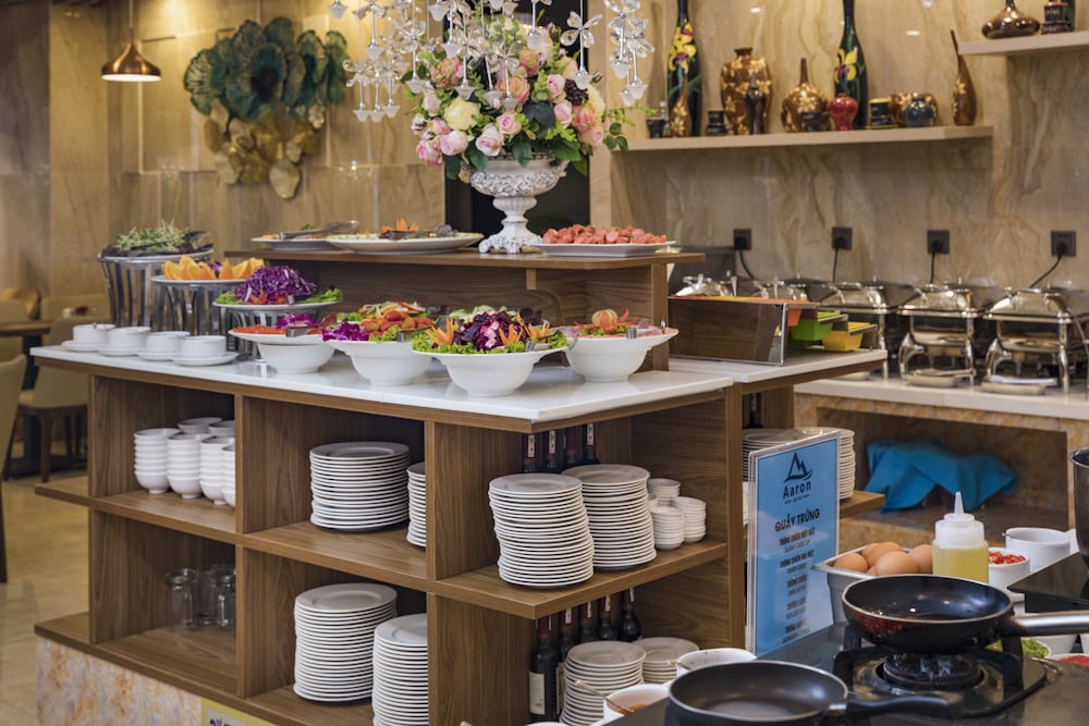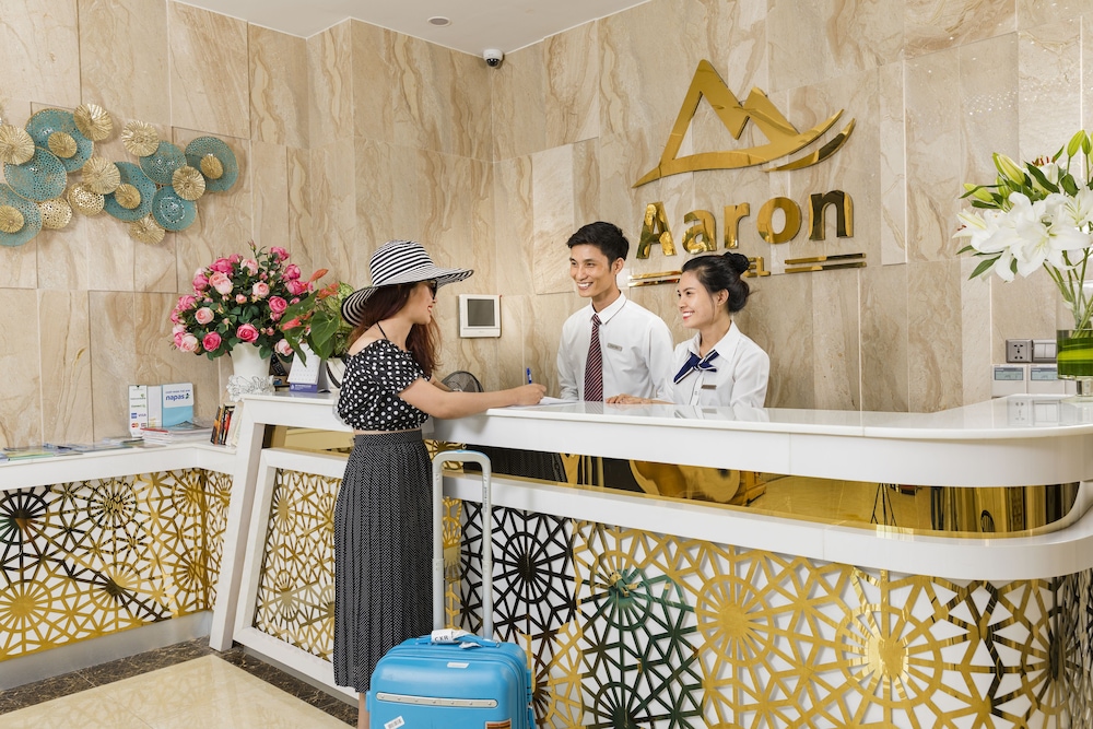 Aaron is one of many typical matchstick hotels in Nha Trang, small but tall, with each floor has 4 rooms. Location is great as it is minutes walking distance from the beach and the Sailing Beach Club. Rooms are excellent with hip and modern designs. Hotel staff are polite and helpful. Breakfast has good selections, noodles soup need much improvement. Breakfast room is small, however, it cannot accommodate all its guests. There is one quirk about this hotel, it does not have a street front. Instead it is tucked behind an alley which it shares with 2 other hotels. You would have to go down to the basement to bring your big luggages up to the lobby.