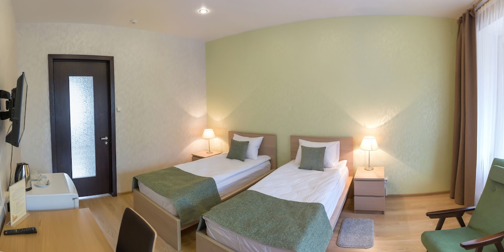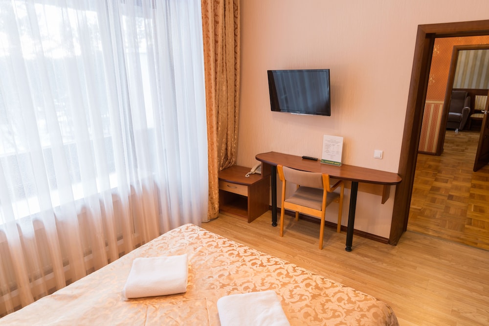 Вкусная еда, большой выбор. Большой и чистый номер. Есть диван. Красивый вид из номера на лес. Хорошая территория для прогулки. Очень отзывчивый персонал. Понравилось . Приедем еще.